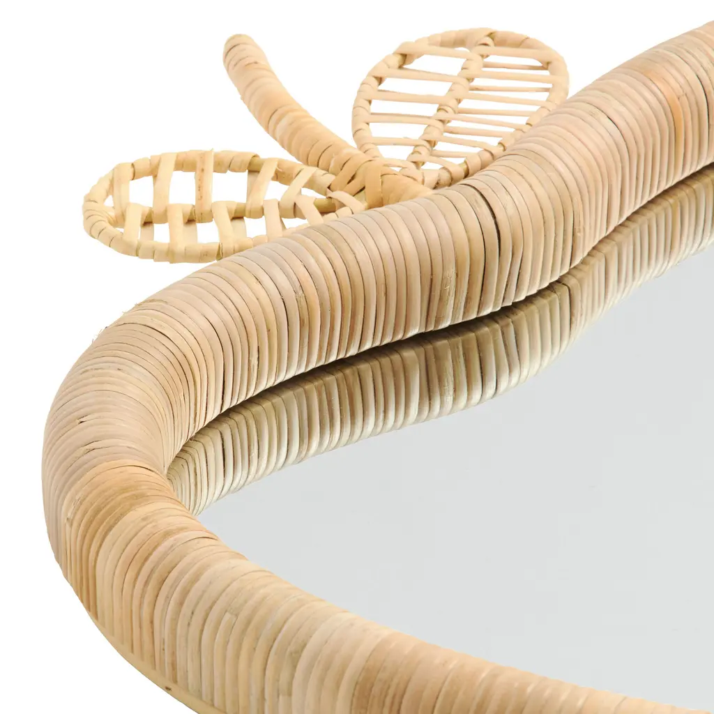Bring a fresh perspective to home decor with our exclusive wall mirror handcrafted of natural rattan woven into the shape of an apple. Ready to hang, this mirror is a charming way to brings a touch of light to bedrooms, kitchens and hallways, and it adds reflective depth to gallery style walls. It's a dimensional complement to living spaces and a unique pairing alongside pottery and textile art.
