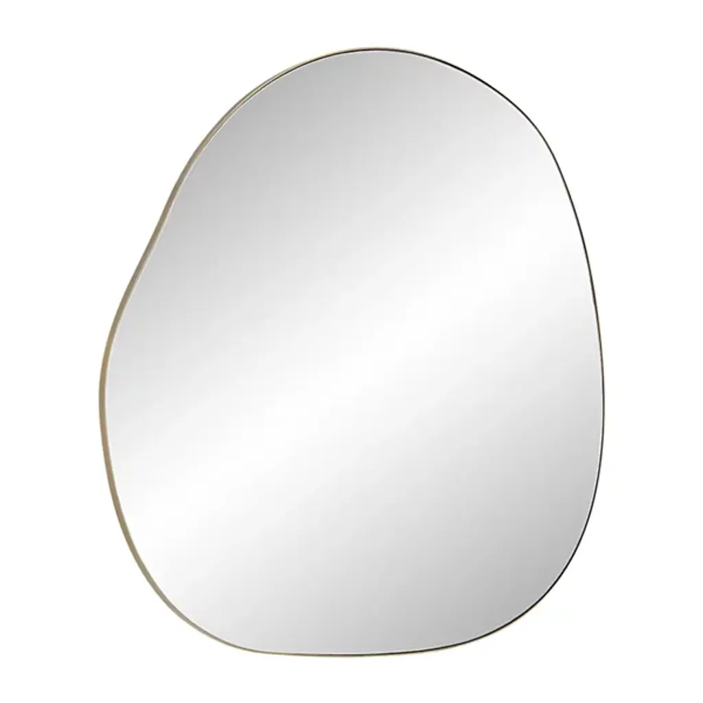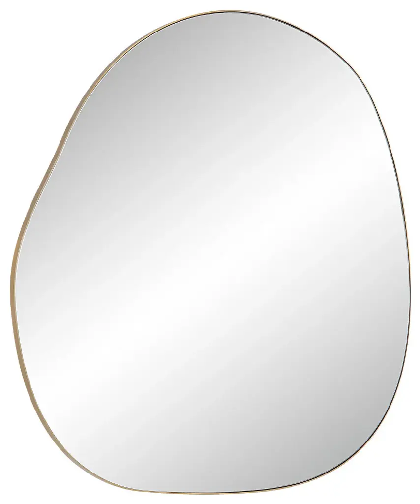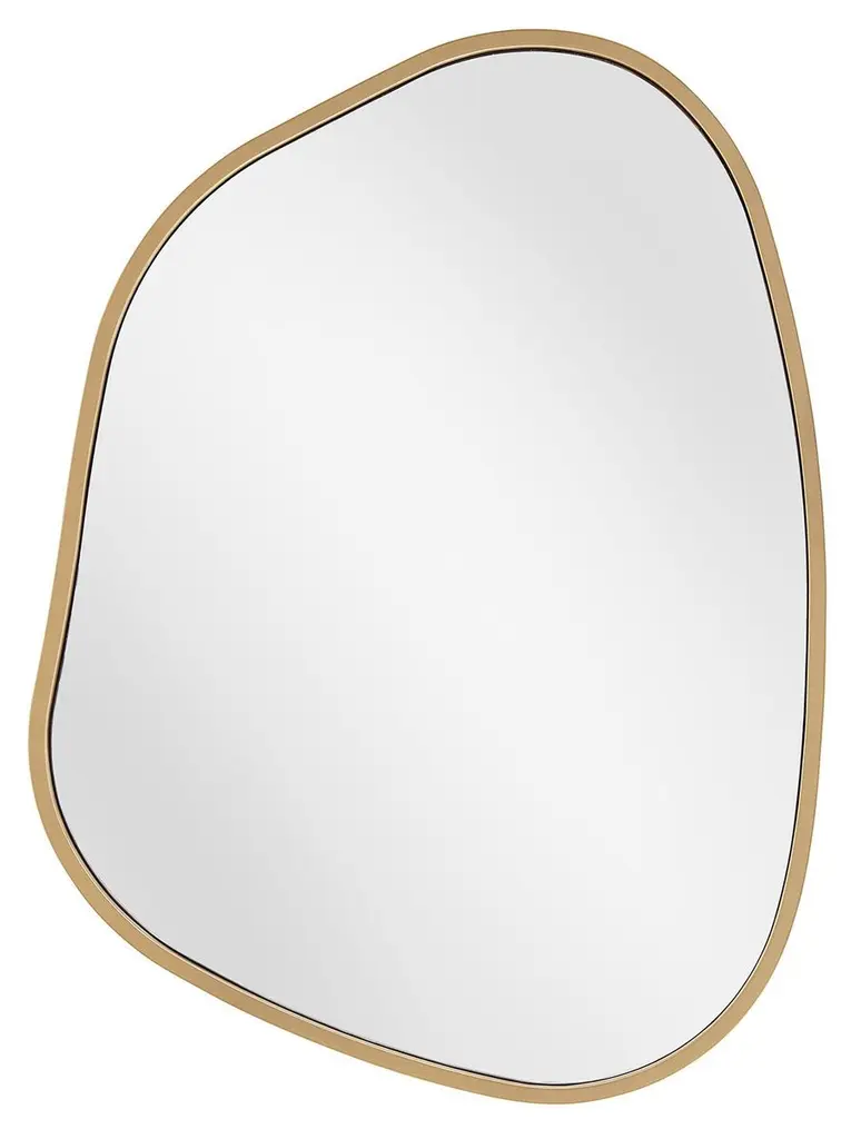 Featuring softly rounded corners handmade in solid polished brass, wall mirror makes a statement with its midcentury-inspired organic shape. Brass is unlacquered, offering a living finish with the patina of a vintage find. CB2 exclusive.