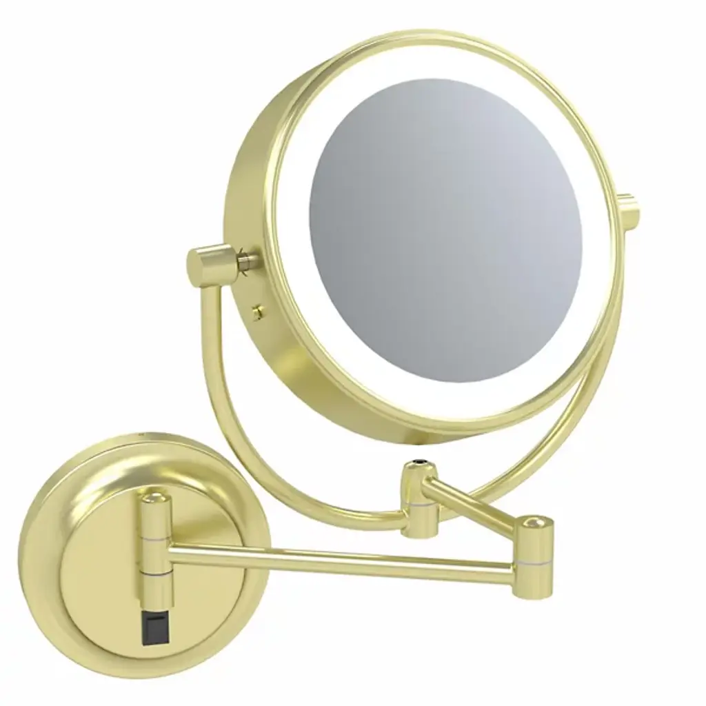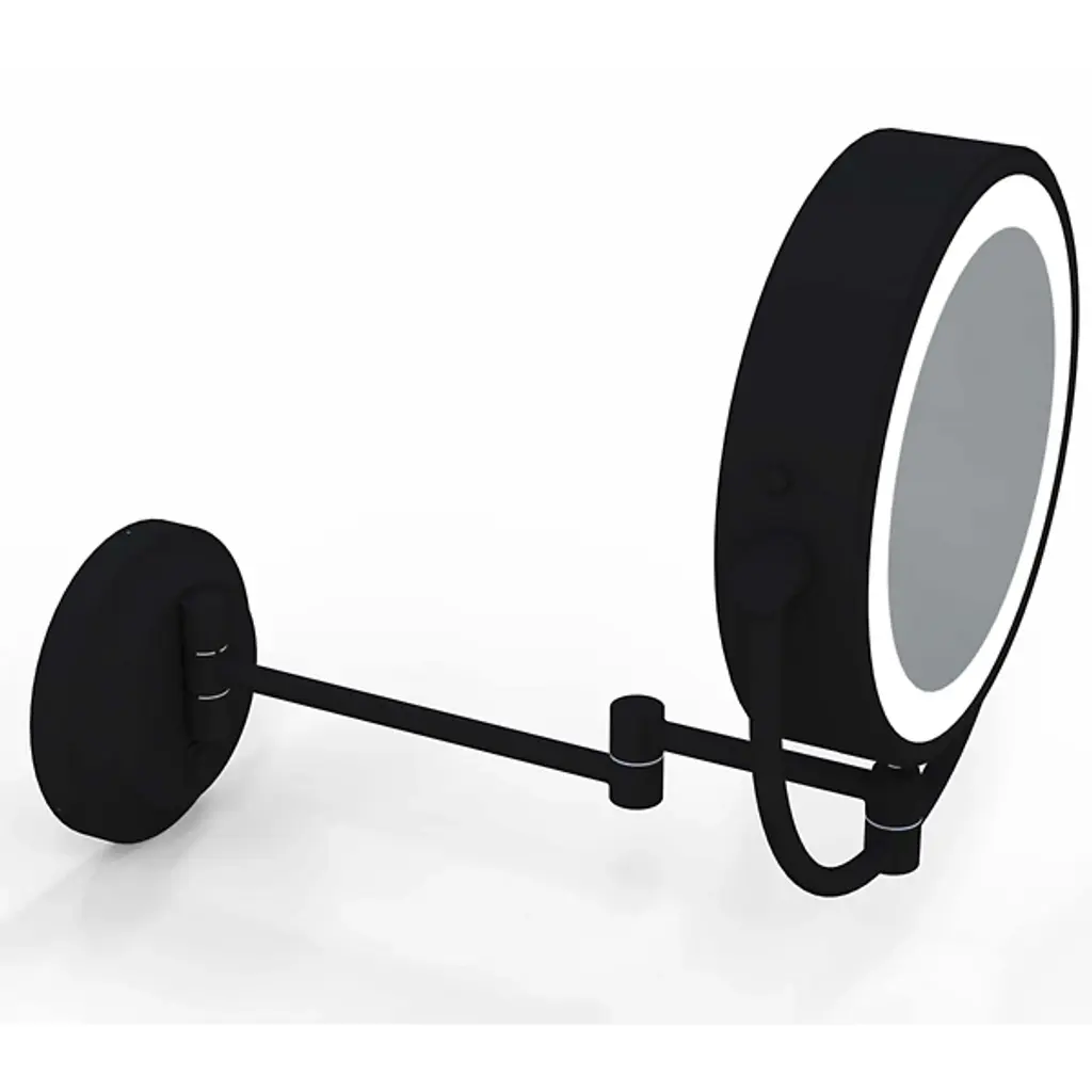 The Neo Modern LED Wall Mounted Mirror transforms your daily grooming routine with high functionality. Dual articulated arms emerge from a circular wall plate, offering exceptional reach and positioning flexibility. This round mirror features dual 5x and 1x magnification, and innovative dual-color LED lighting, with a 3-way toggle switch transitioning seamlessly between warm white and cool white illumination. Contemporary metal construction and damp-listed components ensure lasting service, while the sophisticated design complements modern bathroom aesthetics.