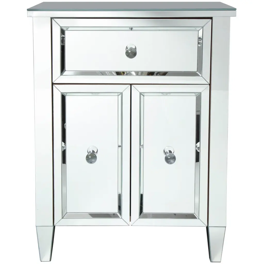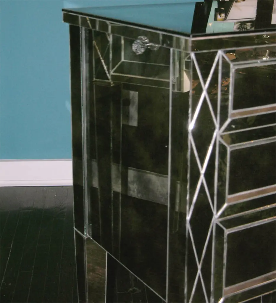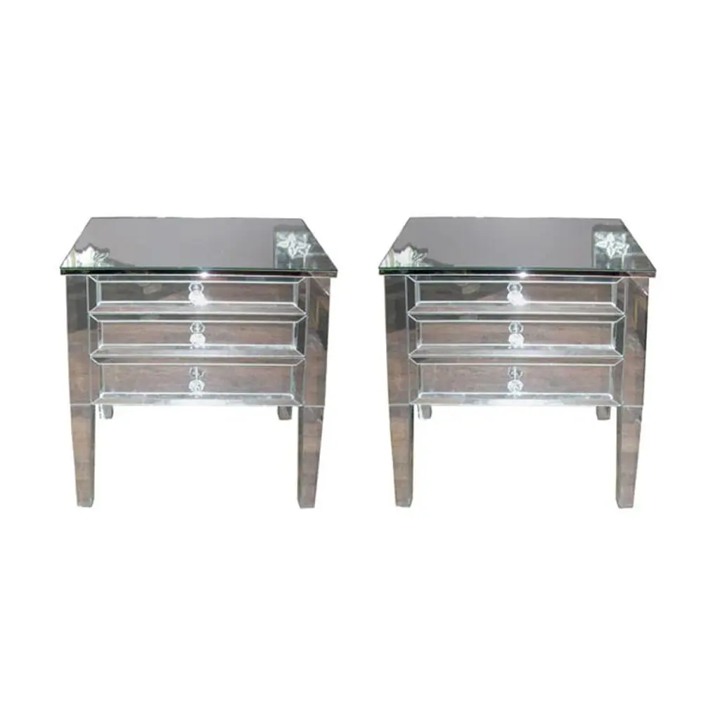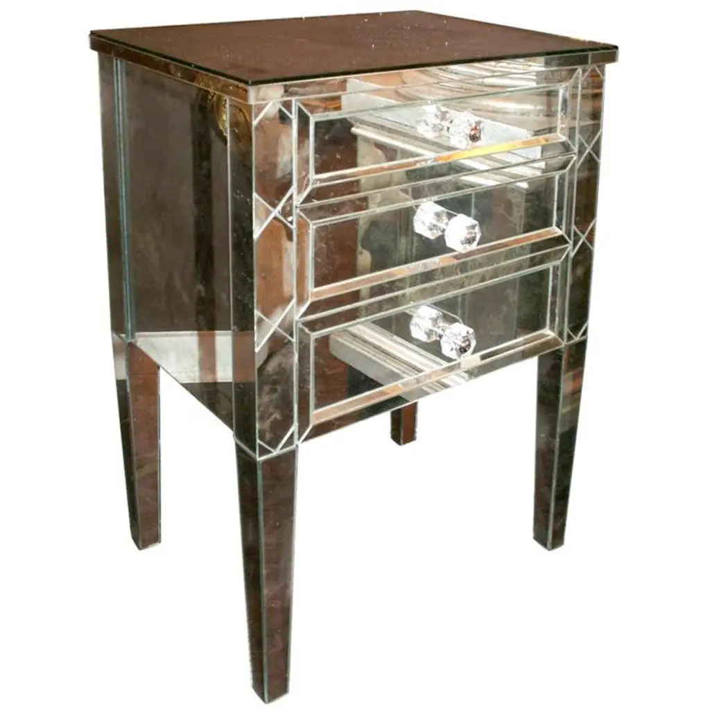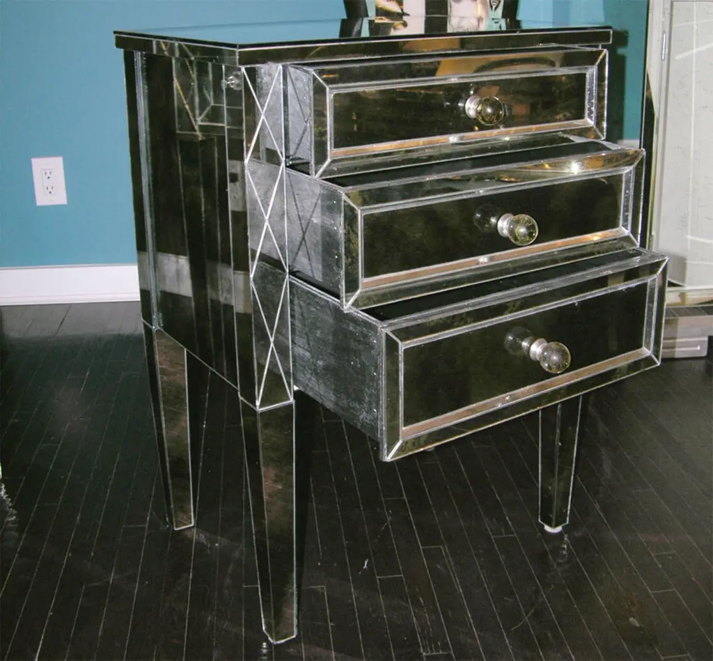 Neoclassical Modern 3-Drawer Diamond Front Beveled Smoked Mirror Nightstand