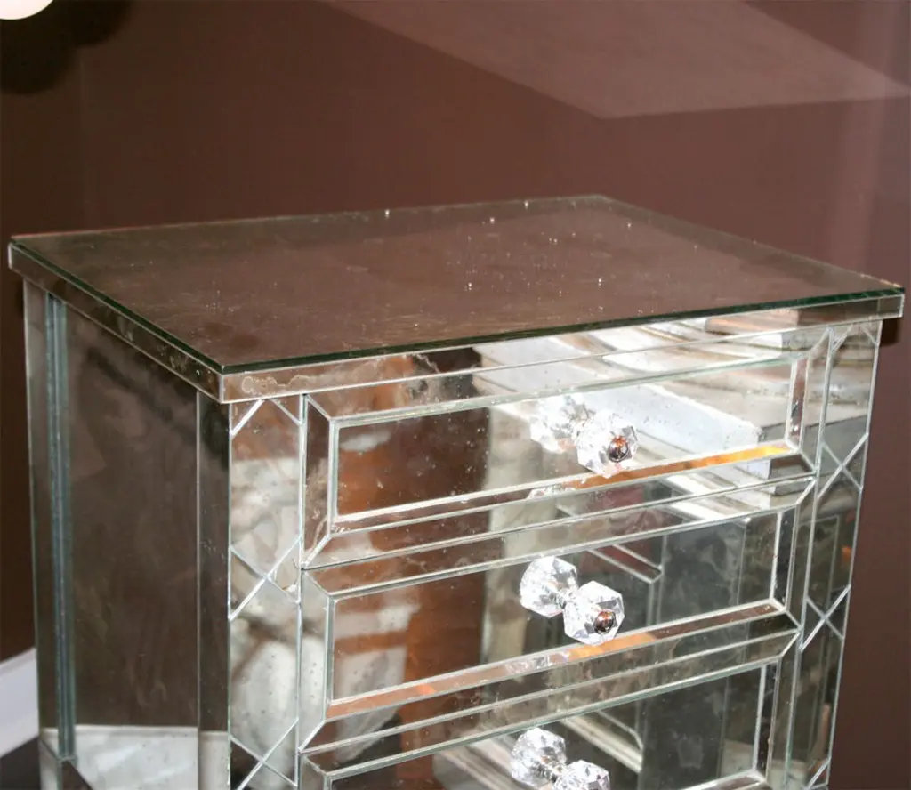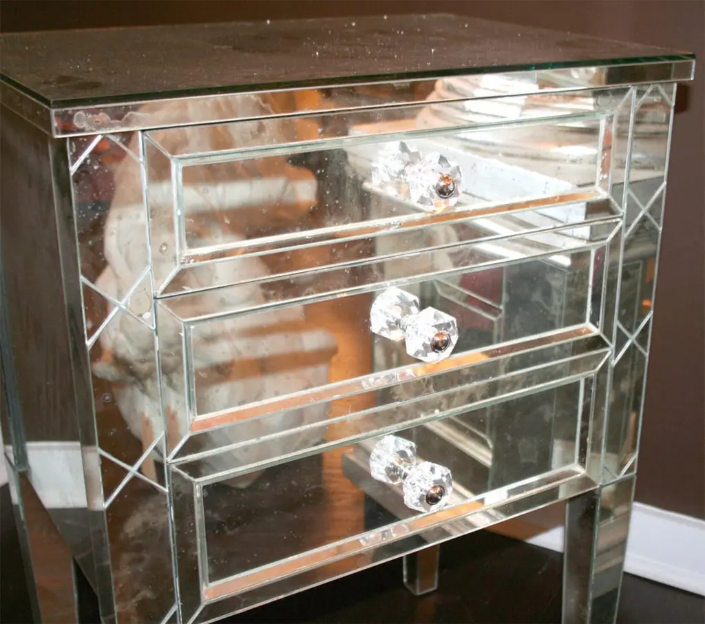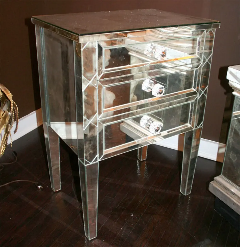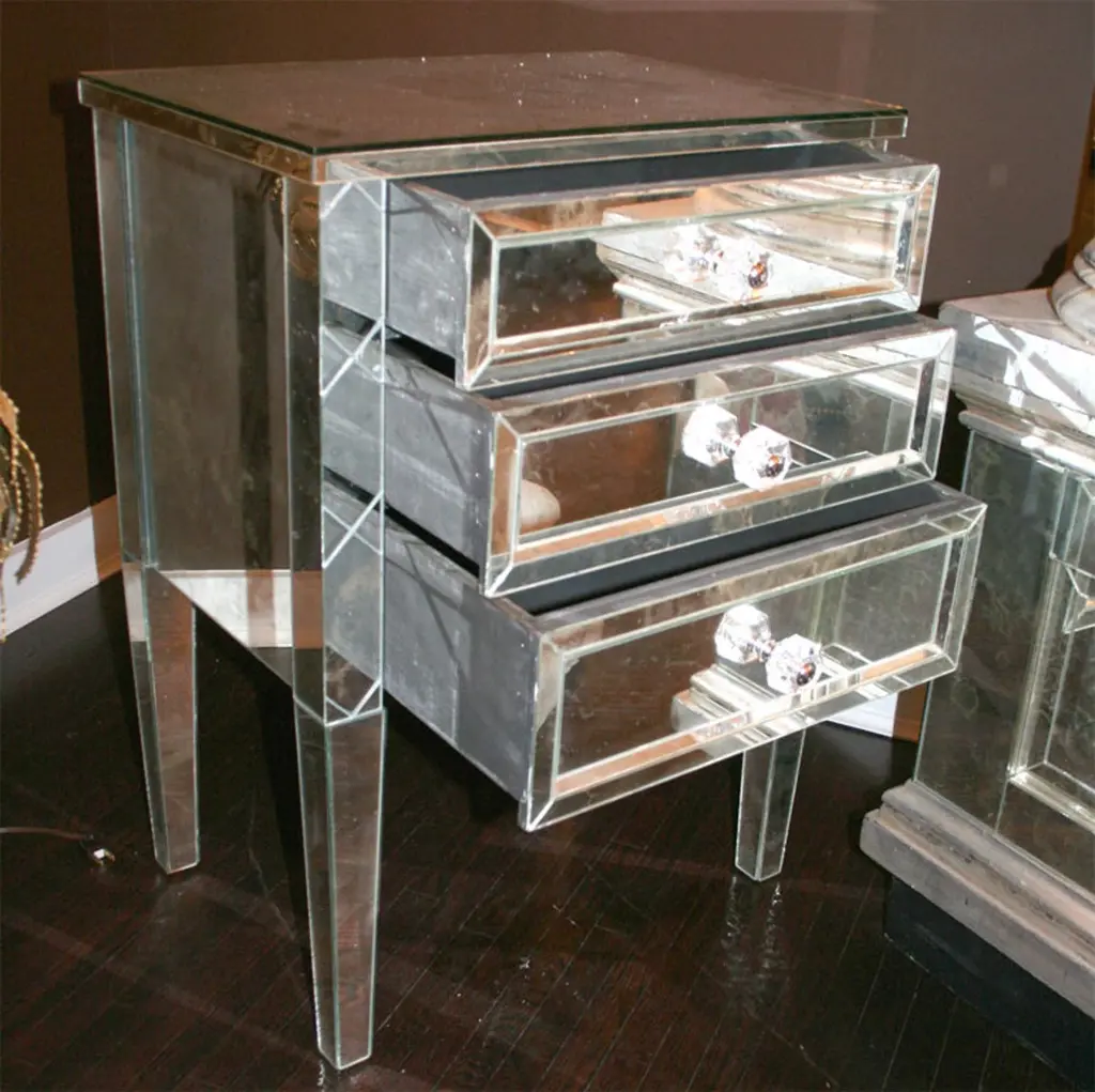 Neoclassical Modern 3-Drawer X-Front Beveled Mirror Nightstand
