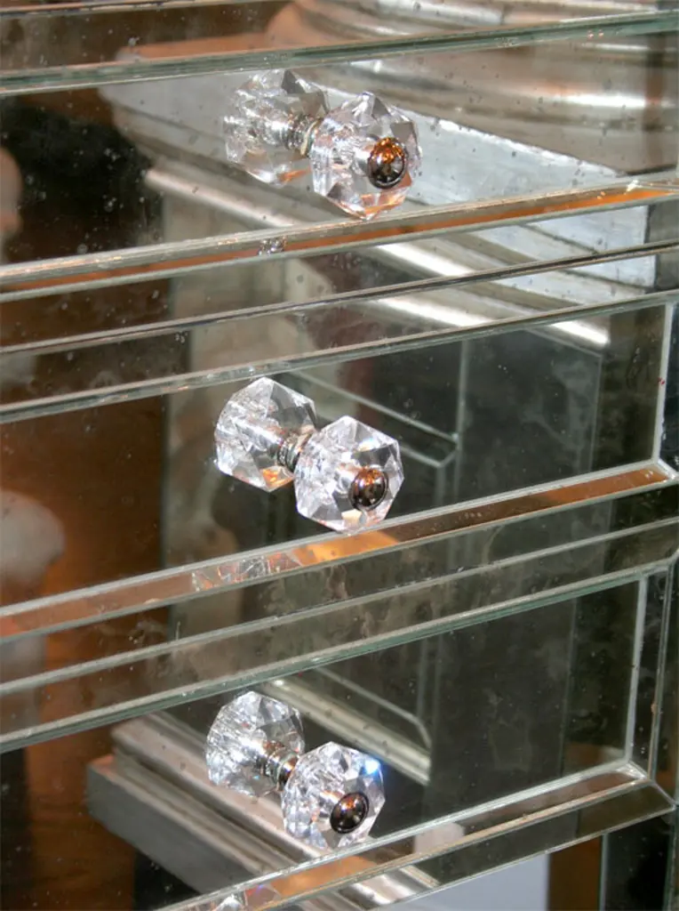 Custom Neoclassical Modern 3-drawer X-front beveled mirror nightstand. Customization is available in different sizes, finishes and hardware.