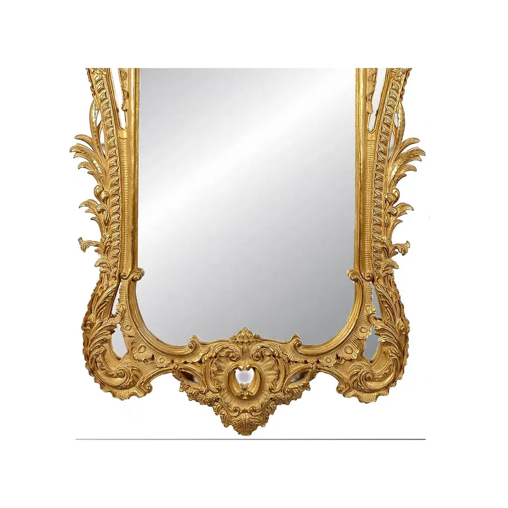 Neoclassical Regency Style Rectangular Gold Foil Hand Carved Wooden Mirror, 1970