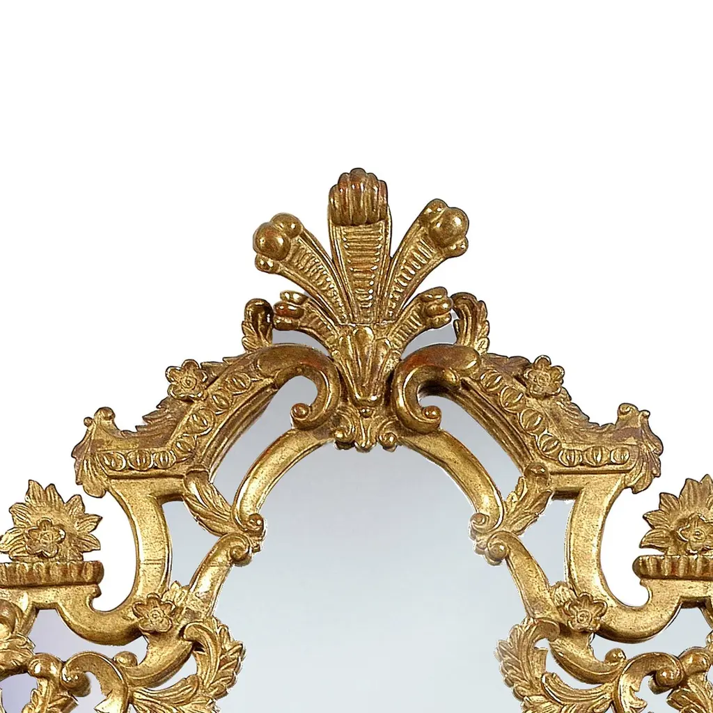 Neoclassical Regency style handcrafted mirror. Rectangular hand carved wooden structure with gold foil finished, Spain, 1970.
