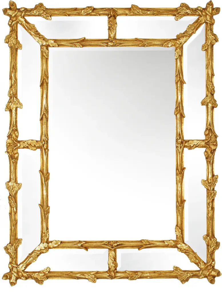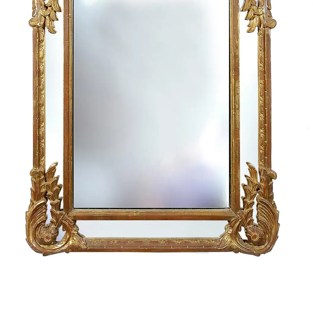Neoclassical Regency Style Rectangular Gold Foil Hand Carved Wooden Mirror, 1970