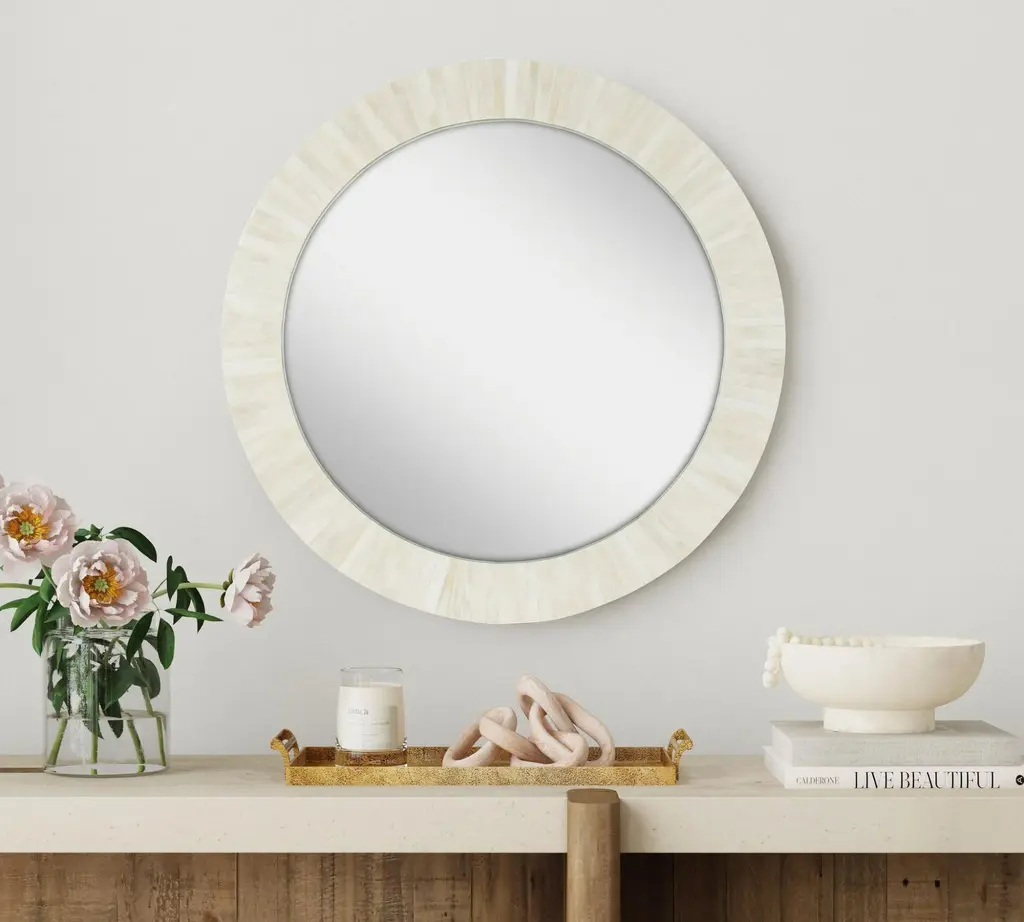 Nevaeh White Bone Round Wall Mirror