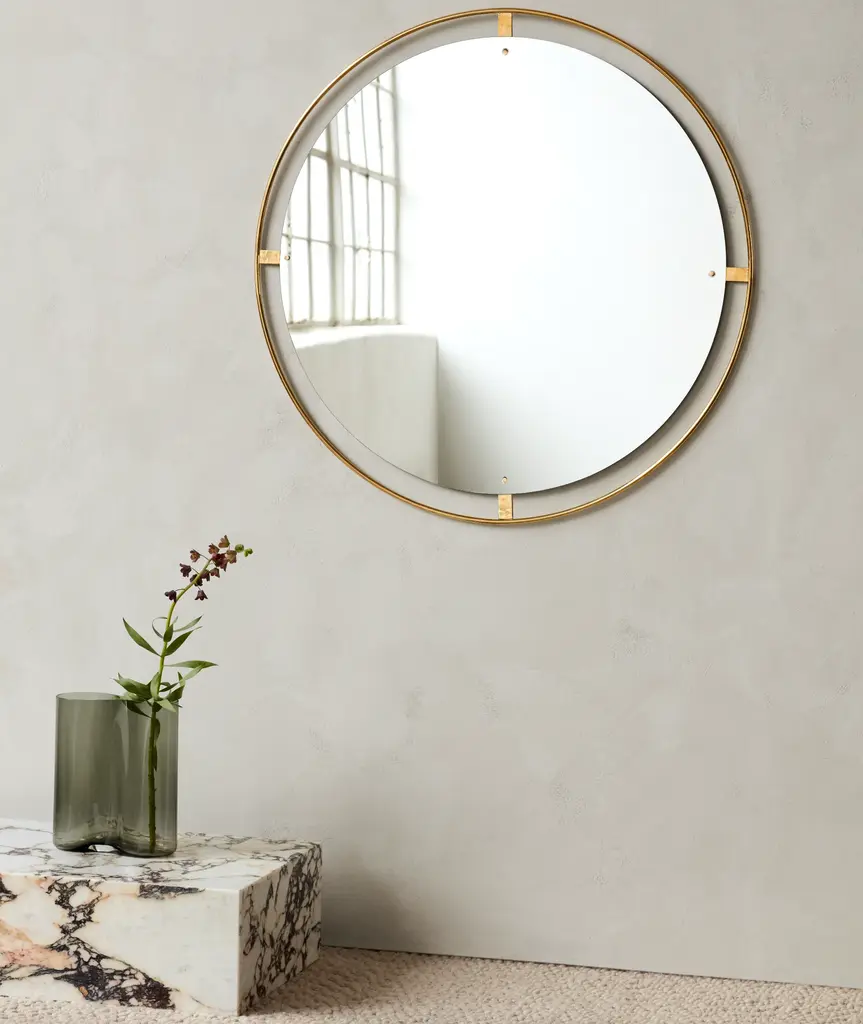 Looking to the way in which a picture or a painting is framed, the Copenhagen based design studio krøyer-sætter-lassen investigated how an entire frame could surround a mirror without detracting from the beauty and reflection of the glass. The result is Nimbus, a refreshingly simple mirror in bronzed or polished brass and light-reflecting glass which defines a space with its soothing and sophisticated round shape.
