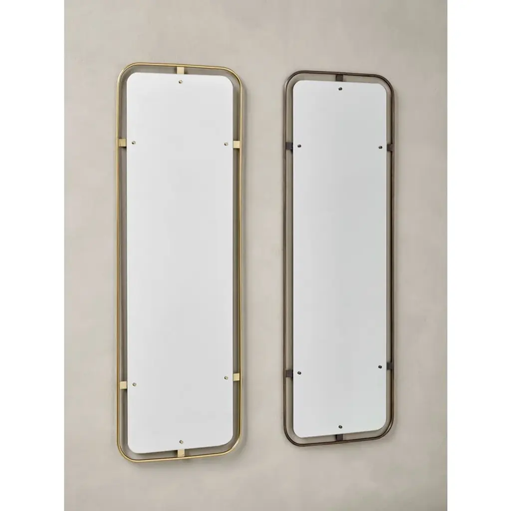 Audo Copenhagen’s Nimbus mirror, designed by Krøyer-Sætter-Lassen, was created based on the Danish design duo’s idea of a framed mirror whose frame would not distract from the mirror itself. The simple and beautiful Nimbus is surrounded by a delicate, halo-like brass frame attached to the mirror with six barely noticeable brass screws. The mirror’s name, Nimbus, was inspired by Greek mythology: the word nimbus referred to the glowing halo or corona surrounding deities.