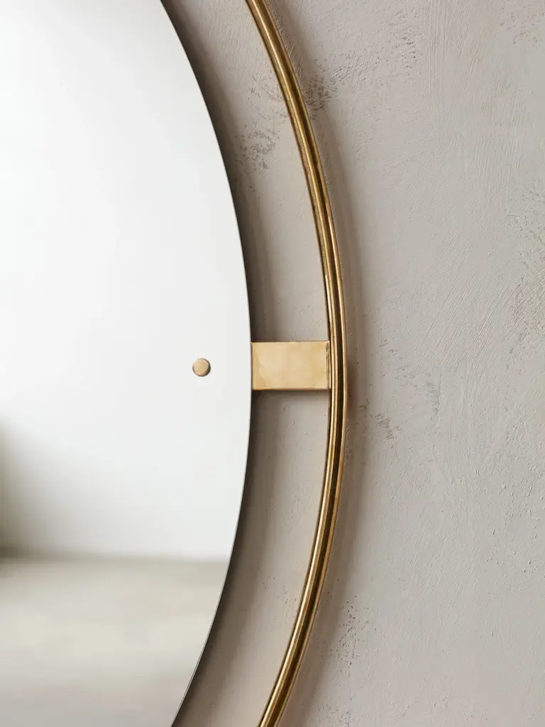 Looking to the way in which a picture or a painting is framed, the Copenhagen based design studio krøyer-sætter-lassen investigated how an entire frame could surround a mirror without detracting from the beauty and reflection of the glass. The result is nimbus, a refreshingly simple mirror in bronzed or polished brass and light-reflecting glass which defines a space with its soothing and sophisticated round shape.A mirror isn’t merely purely functional: since ancient times, they have reflected the style of a period, framed by ornate Baroque flourishes or Gothic arches and the simple lines of the Bauhaus movement. Audo’s latest iteration takes the fundamentals of the mirror into the modern age, yet with a mythological twist, referenced in its name: in Greek mythology Nimbus was a shining cloud or corona that often surrounded a deity when on Earth. Design studio Krøyer-Sætter-Lassen looked to the way in which a painting or picture is framed to change the overall expression of the artwork. Encompassed by a halo-like bronzed or polished brass ring, held in place by decorative screws, the circular mirror adds to the sense of light and space in a room.Surrounded with a bronzed or polished solid brass frame, held in place with decorative screws, the Nimbus mirror measures 110 cm in diameter, making it ideal as a functional object, as well as a decorative addition to homes, hotels or offices.