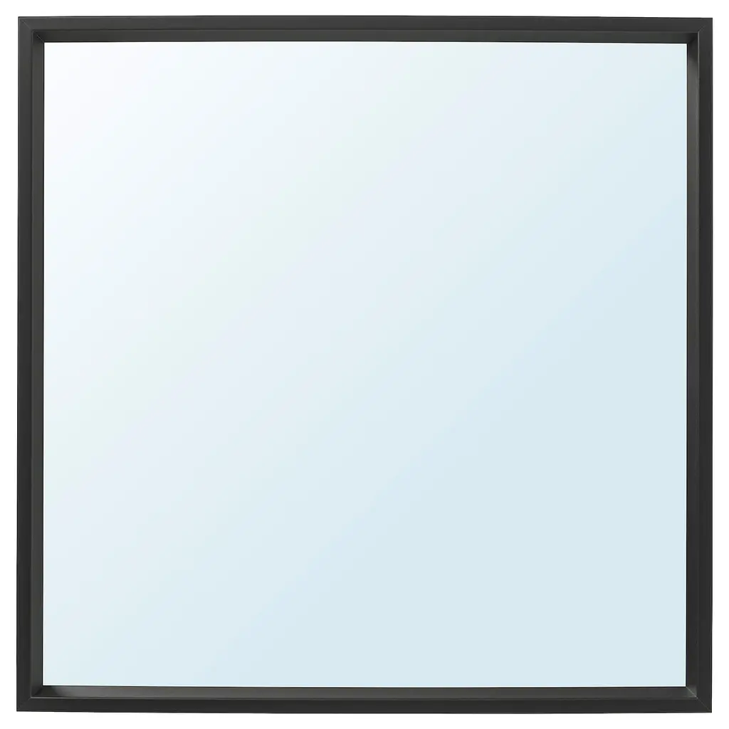NISSEDAL Mirror - black 25 5/8x25 5/8 ". Safety film reduces damage if glass is broken. Suitable for use in most rooms, and tested and approved for bathroom use. To hang securely in place on the wall, this mirror requires 2 screws.