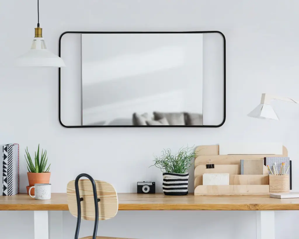 Capture a chic, modern design that elevates your room with the Nobles wall mirror. Inspired by contemporary, industrial aesthetics, this mirror features a metal frame with a rounded rectangle shape, making it look and feel sophisticated. The frame also features a sleek black finish, giving it a refined elegance that is fantastic for multiple decor aesthetics. The metal frame also extends beyond the reflective glass, giving it a floating quality that makes a bold impression on any wall of your home. This edition of the Nobles mirror is 20 inches wide by 36 inches tall, creating a striking focal point that commands attention. Adding a mirror to your home like the Nobles creates a more dimensional space, enhancing the room''s vibrancy while creating an open environment. Use this rounded rectangle wall mirror as a functional bathroom mirror above your vanity, or use it to make a fabulous modern statement in your living room, bedroom, or entryway. Regardless of how you display the Nobles, it''s simple to hang with resilient keyhole hangers welded to the metal frame. • MODERN DESIGN: The Nobles mirror features a rounded rectangle frame that extends beyond the glass, giving the reflective surface a floating quality that captures the eye • QUALITY MATERIAL: The frame of the Nobles mirror is made with robust metal, giving it an industrial modern look that looks chic and stands out on your wall• LARGE SIZE: The overall dimensions of the Nobles mirror are 20 inches by 36 inches, making it a large and jaw-dropping accent piece to captivate family and friends• VERSATILE: This large mirror enhances the vibrancy in your space, making it a functional accent piece in your living room, bedroom, or entryway, or a modern bathroom mirror above your vanity• EASY TO HANG: Metal keyhole hangers are welded to the back of the frame for quick and efficient installation in both vertical and horizontal orientations