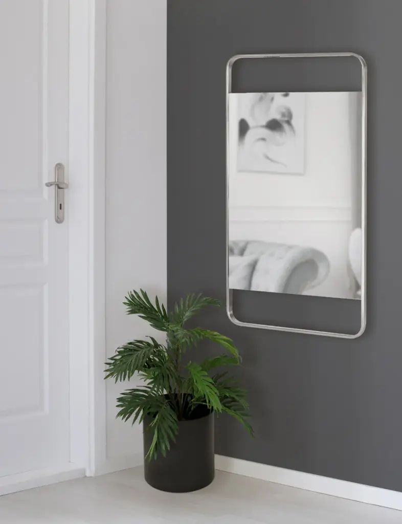 Capture a chic, modern design that elevates your room with the Nobles wall mirror. Inspired by contemporary, industrial aesthetics, this mirror features a metal frame with a rounded rectangle shape, making it look sophisticated. The frame also features a sleek silver finish, giving it a refined elegance that is fantastic for multiple decor aesthetics. The metal frame also extends beyond the reflective glass, giving it a floating quality that makes a bold impression on any wall of your home. This edition of the Nobles mirror is 20 inches wide by 36 inches tall, creating a striking focal point that commands attention. Adding a mirror to your home like the Nobles creates a more dimensional space, enhancing the room''s vibrancy while creating an open environment. Use this rounded rectangle wall mirror as a functional bathroom mirror above your vanity, or use it to make a fabulous modern statement in your living room, bedroom, or entryway. Regardless of how you display the Nobles, it''s simple to hang with resilient keyhole hangers welded to the metal frame. • MODERN DESIGN: The Nobles mirror features a rounded rectangle frame that extends beyond the glass, giving the reflective surface a floating quality that captures the eye • QUALITY MATERIAL: The frame of the Nobles mirror is made with a robust iron material, giving it an industrial modern look that looks chic and stands out on your wall• LARGE SIZE: The overall dimensions of the Nobles mirror are 20 inches by 36 inches, making it a large and jaw-dropping accent piece to captivate family and friends• VERSATILE: This large mirror enhances the vibrancy in your space, making it a functional accent piece in your living room, bedroom, or entryway, or a modern bathroom mirror above your vanity• EASY TO HANG: Metal keyhole hangers are welded to the back of the frame for quick installation both vertically and horizontally