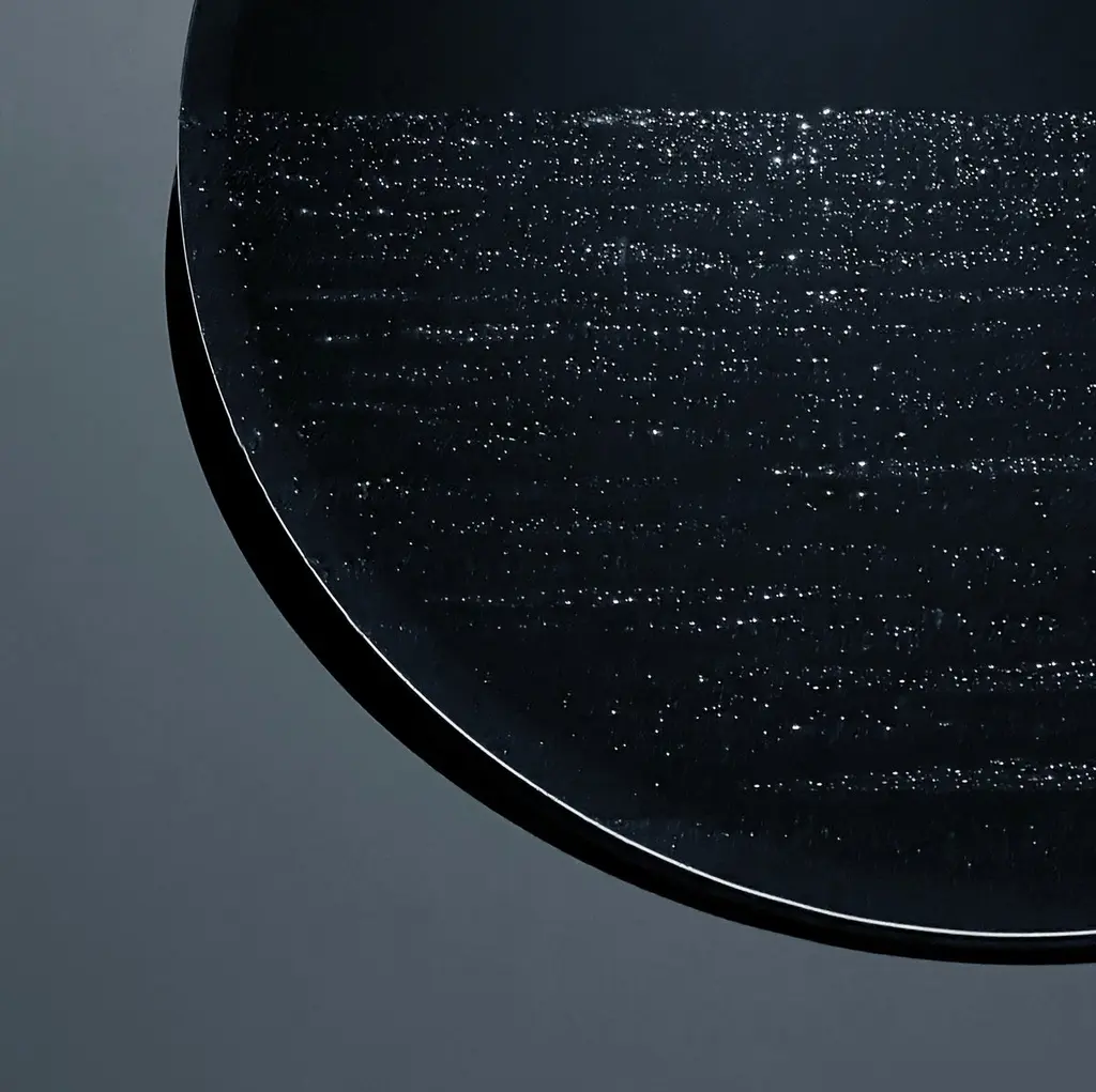 Norah Mirror "90" by Arturo ErbsmanHandmade with precision in Paris.Each piece is one of a kind.Materials: Grey tinted mural mirror, resin dropsDimensions: D 90 cmAlso available: D 60cm, please contact us Introducing Norah - a concept arising from the desire to create a piece that can transcend the boundaries of physical perception. Norah is a visual optical treat that recreates the illusion of the sun glitter over the sea surface. A creative intersection where form, materials, and emotions are sensuously submerged to elevate techniques to a new dimension. Designed to exhilarate senses and feelings of nostalgia through expressiveuse of calculated repeated patterns, Norah is an optical postcard of your last seaside holiday.Arturo Erbsman is a French designer whose works reflect different points of intersection between manufactured objects and the four elements of nature. He focuses on showing the delicacy of distinct aspects of water like ice, snow, stalactites, condensation and vapor in his handmade lighting objects. He derives his source of inspiration from his faraway travels and from closely observing natural phenomena of everyday life.