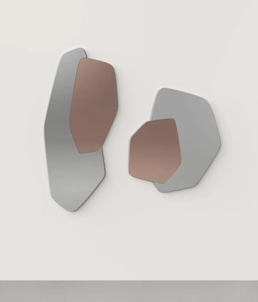 Nori V2 wall mirror by Simone FanciullacciLimited edition of 1000 pieces. Signed and numbered.Dimensions: D 56 x W 0.5 x H 124 cm.Materials: classic finish mirror+ fumé finish mirror.Also available in different colours and dimensions. Nori is a collection of contemporary mirrors made by Italian artisans in different shades and colors. It is part of the collectible design language Nori that has been developed by the Edizione Limitata’s art research team in Milan. Nori is made up of elegant shapes of color that will catch the attention of all who pass in front of it.It is not just a reflective surface but a unique piece inspired by the unpredictability of splashes of color. Nori’s language plays with its chiaroscuro contrasts in a spontaneous way and its organic forms exchange light with each other with extreme lightness.Edizione Limitata, that is to say “Limited Edition”, is a brand promoting and developing objects which combine a unique design with the tradition and quality of made in Italy.Edizione Limitata celebrates love for design, details and dialogue between different materials and it constantly pursues to strike a balance between shape and matter, project and production.The collection is the result of such a conception: objects which are able to become part of everyday life and tell a story of passion and research.Edizione Limitata is a brand curated by Simone Fanciullacci.