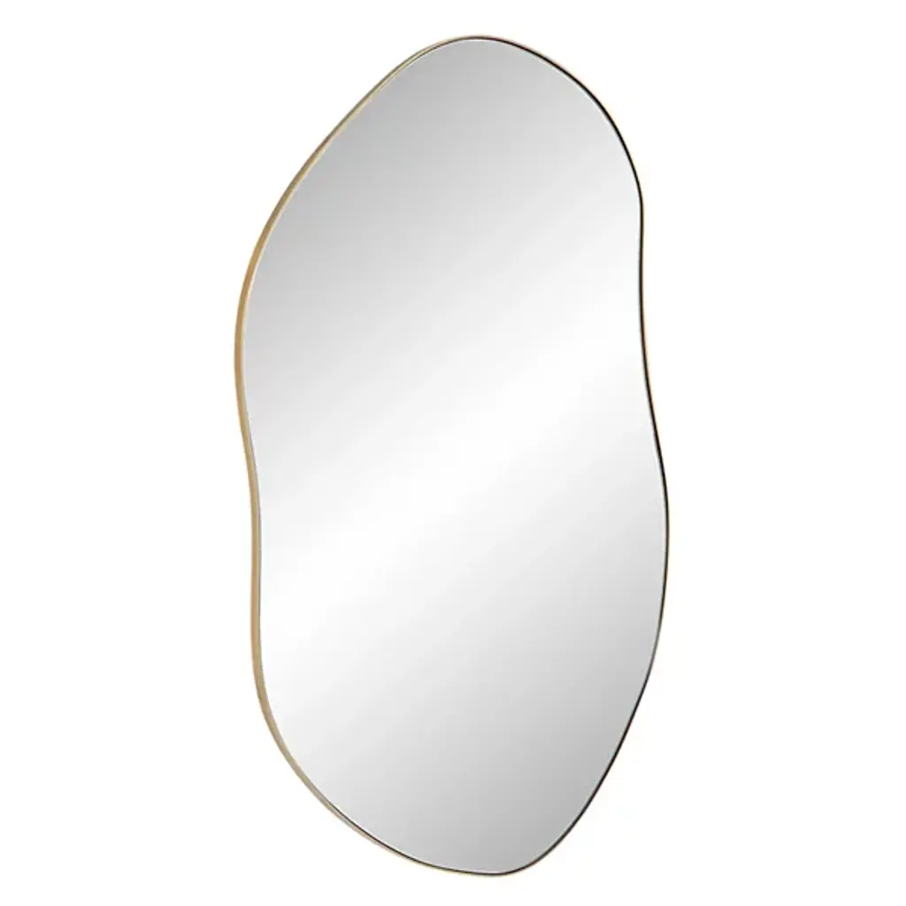 Elevate your décor with the Noria Oval Mirror from Renwil, designed to add sophistication to any space. Its unique, irregular shape and sleek, Burnished Brass finish create an elegant statement. This mirror combines durability and style, perfect for living rooms, bedrooms, or dining areas. It offers a luxurious centerpiece that enhances any interior with timeless charm.