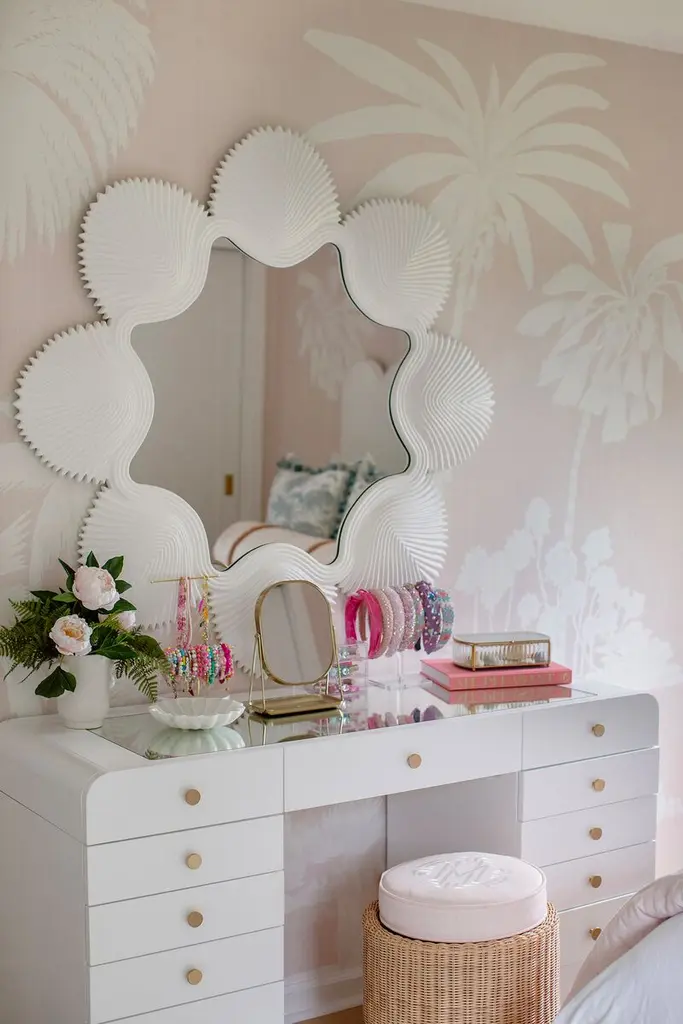 The Megan Molten x Cooper Classics Norma Wall Mirror is expertly crafted with a painted white finish and made from high-quality PU material. With its sleek and modern design, this mirror adds a touch of sophistication to any room. Its durable construction ensures long-lasting use, making it a practical and stylish addition to your home decor.