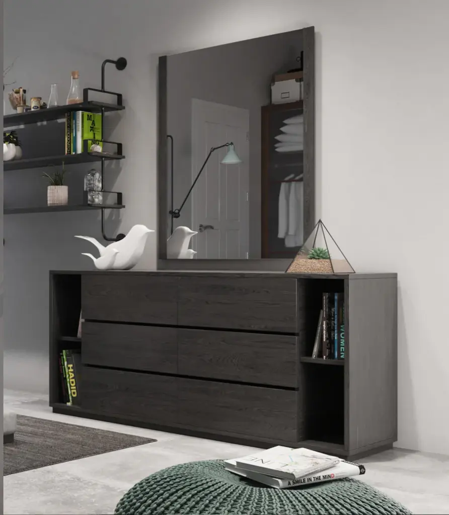 A mirror is a unique piece of furniture in that it can be used for aesthetic purposes but it''s also a highly functional piece. Whether you''re looking for a mirror for your bedroom, back hallway or entryway, this stunning rectangular piece is a great option. This particular mirror is part of a bedroom set, so you can be sure it will match any furniture from the Jagger collection, but its grey finishes will match almost any other design elements in your home. This piece is also oversized, making it a great piece to add if you''re looking to make a statement. Gray Wash Veneer FinishRectangular MirrorRequires Assembly To Dresser