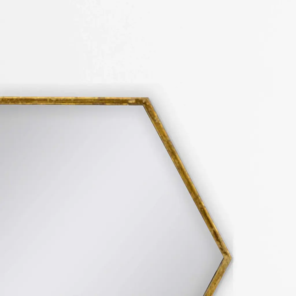 Hexagon mirror with burnished gold frame. (mirror size without frame: 24h x 27w)