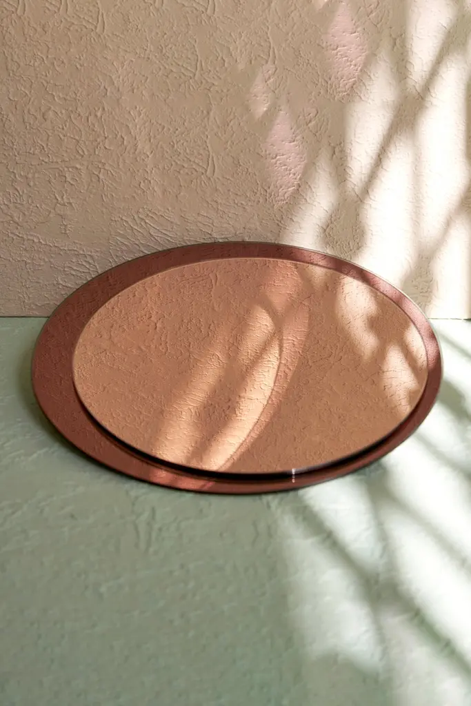 Nova Wall Mirror by Yugen LabDimensions: Ø 35 cm.Materials: 4mm copper mirror glass and 4mm rose gold glass.Nova round mirror, sized 35 centimeters in diameter, combines rose gold and copper mirrors, creating a mesmerizing and warm glow. This addition brings a touch of Art Deco sophistication to your living space.'Yugen' is the Japanese word for the feeling when a person feels part of the universe and the whole, one with nature and the flow. Harmony, balance, and serenity...Based on these feelings, we believe that design should be approached with a holistic perception by bringing together different disciplines, and we brought together Yugen Lab with the inspirations we receive from art, architecture, fashion, and nature, combined with our interior architecture infrastructure that we have experienced for years.Our goal is to create a flow and add an innovative line to your living spaces by enriching the glass material we use as a tool for our transparency principle with form, texture, and colors.Our greatest passion is that our designs, all produced domestically with great care and meticulousness, become a 'source' for you in your living spaces.