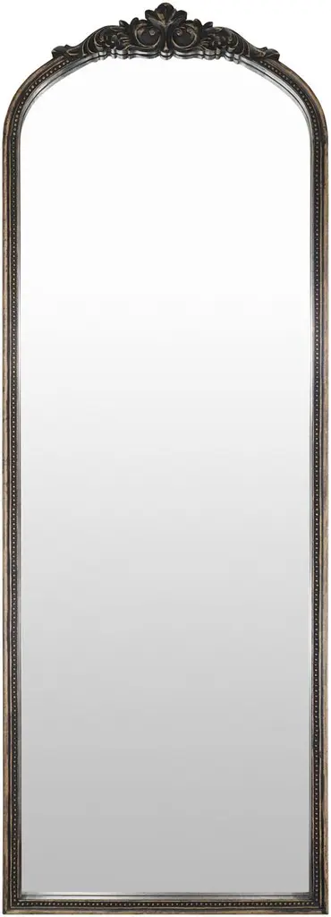 The Noya mirror brings a touch of romance to any space with its tall, arched silhouette and ornate detailing. A carved crest crowns the wooden frame, while beaded trim adds delicate texture around the edges. Style this full-length mirror in a bedroom or hallway to reflect light and inspire a timeless, collected feel.