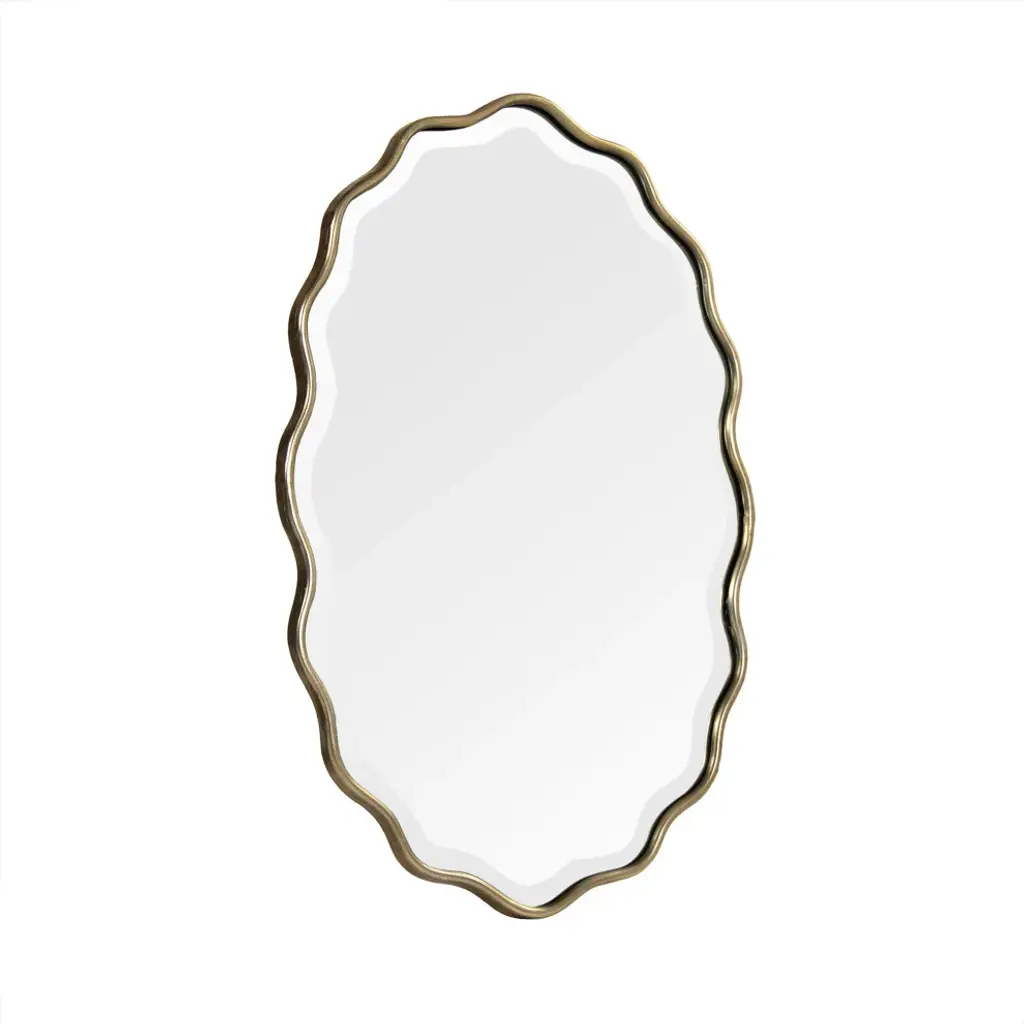 Ruffled edge oval mirror in distressed light gold finish. Zentique combines unique designs with high-end materials to bring you the very best home decor in the business. When you order a product engineered and manufactured by Zentique, you''re guaranteed to get a product that is built to last for years and years to come. This product will come in ship-safe packaging materials and will be sure to impress!DimensionsLength: 19. 5 in. Width: 0. 75 in. Height: 29. 5 in. Some assembly required: No