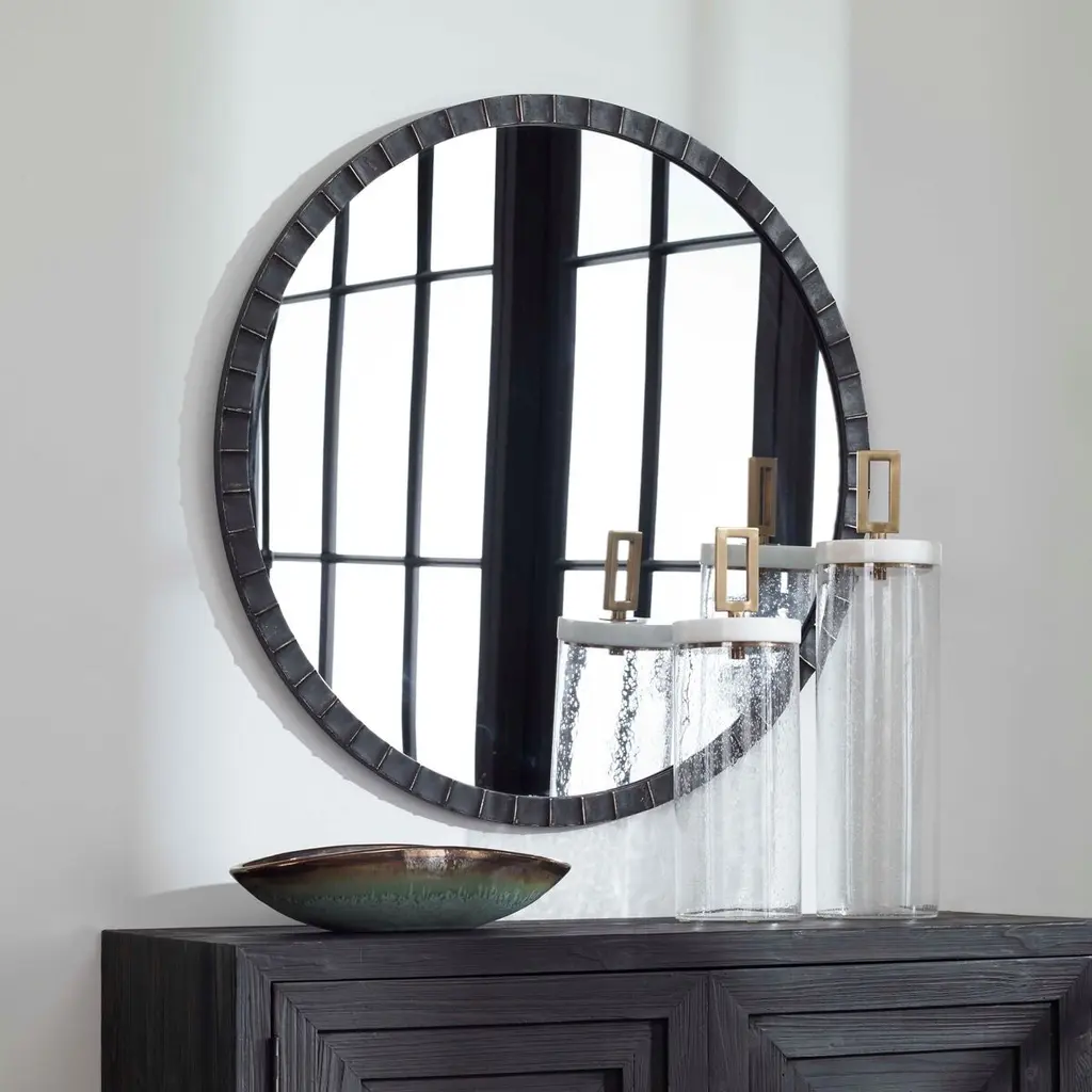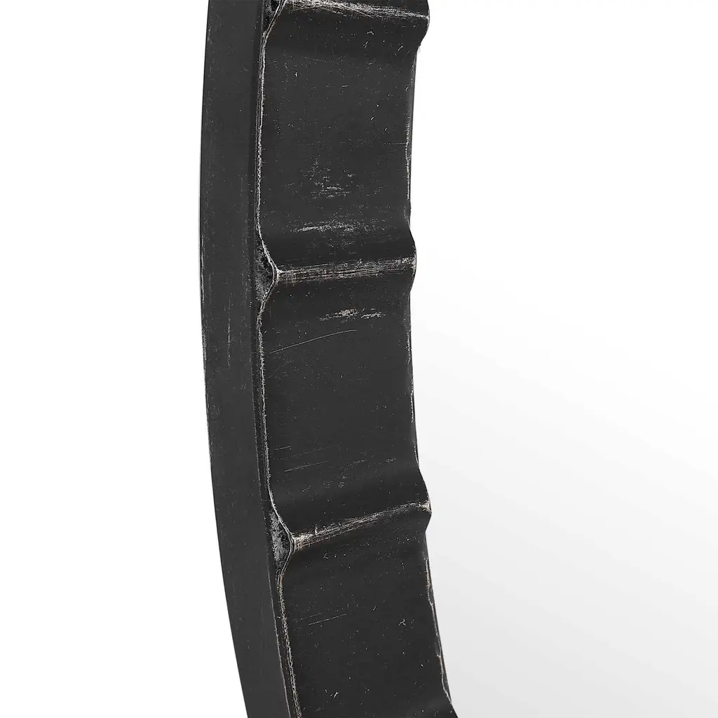 Constructed from hand forged iron with noticeable raised ridges for a touch of industrial influence, finished in a slightly distressed matte black with silver undertones.