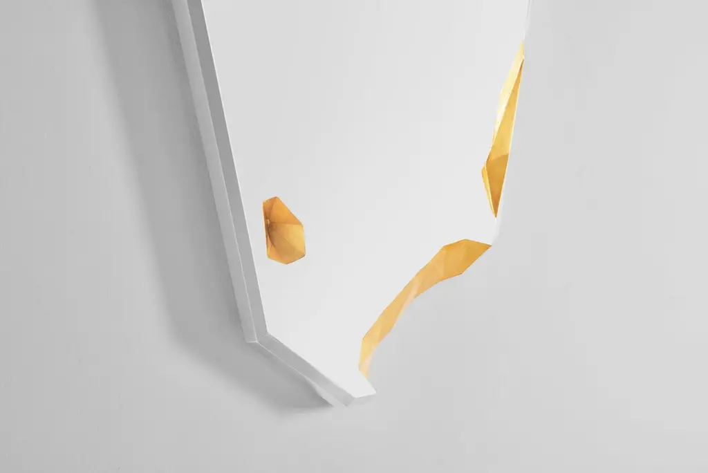 Size and color is customizable upon request, lead time is 30-60 days.Through Atelier Mark Sturkenboom, he has formulated a mineral-based fluid which, through a gradual process of accretion, precipitates the growth of crystals on various types of objects. As part of the Overgrown series, “Once Upon A Time” is a collection of diamond-shaped mirrors that are overgrown with natural minerals. The mirrors portray a fading self reflection and allude to a changing state of transience in time and identity.