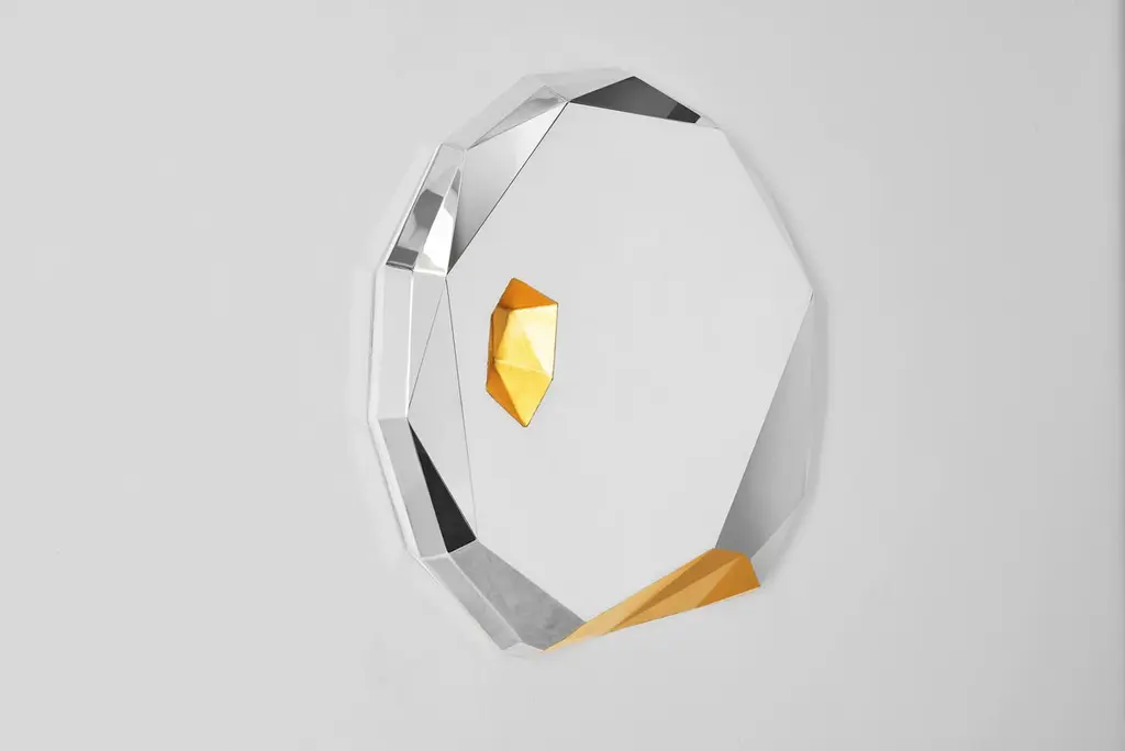 Size and color is customizable upon request, lead time is 30-60 days. We ship internationally.Through Atelier Mark Sturkenboom, he has formulated a mineral-based fluid which, through a gradual process of accretion, precipitates the growth of crystals on various types of objects. As part of the Overgrown series, “Once Upon A Time” is a collection of diamond-shaped mirrors that are overgrown with natural minerals. The mirrors portray a fading self reflection and allude to a changing state of transience in time and identity.