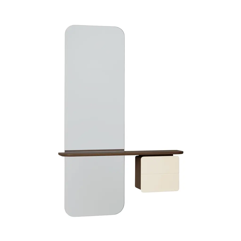 A word like "multifunctional" hardly seems to describe the elegant utility of this full-length mirror from the carefully considered Umage debut furniture collection. One More Look allows for a head-to-toe view in its marvelously minimalist frameless mirror—with the added touch of a second hand-held mirror for closer inspection, stored in the colored side cabinet. A further thoughtful addition by designer Jonas Søndergaard is a leather tray fitted into the cabinet for storing things like keys, makeup, sunglasses or a billfold.