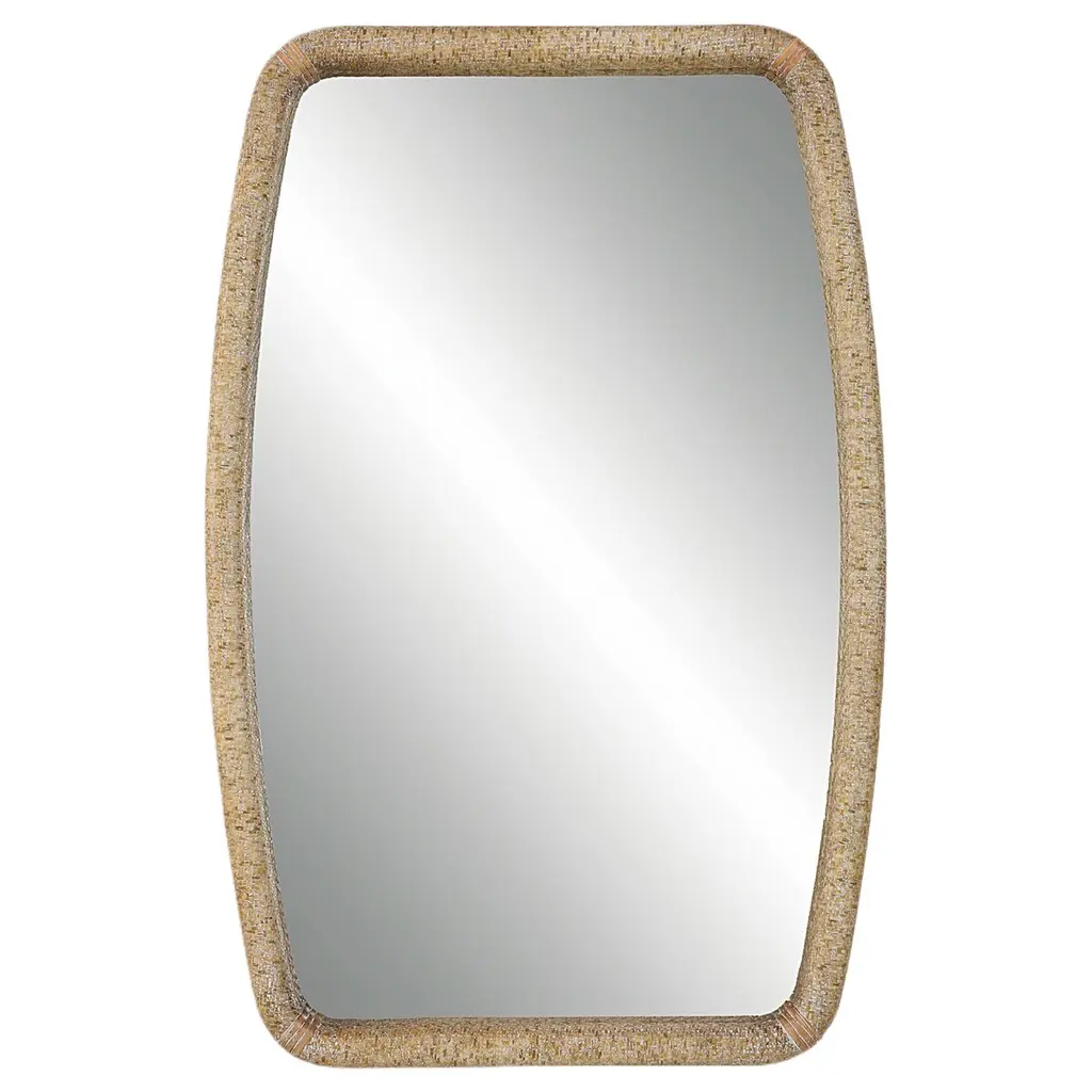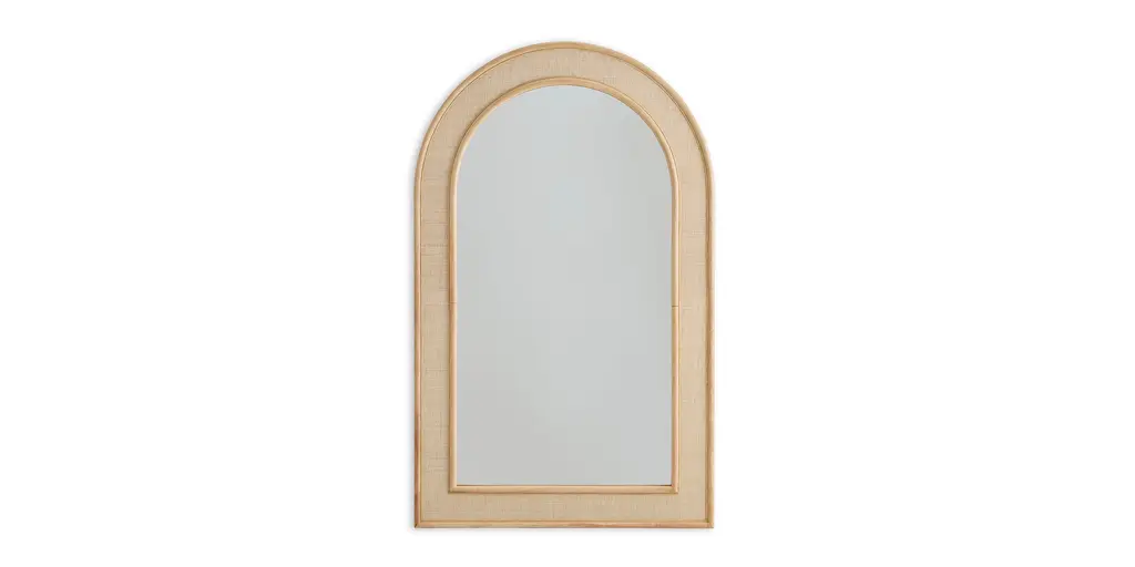 Woven rattan adds a touch of organic texture to this versatile mirror. The natural material blends seamlessly with any décor, while the wrapped design creates a unique, eye-catching look. Hang horizontally or vertically.