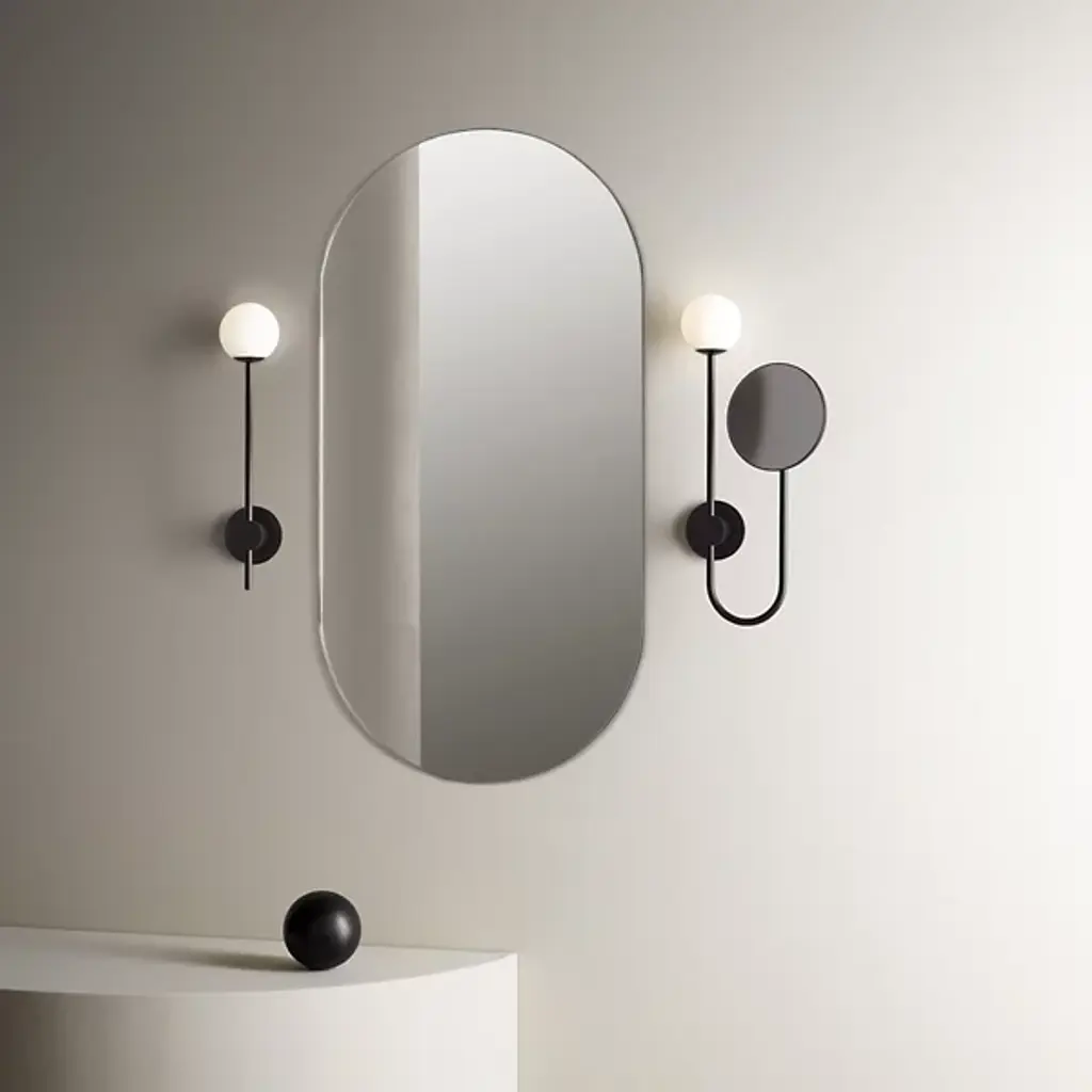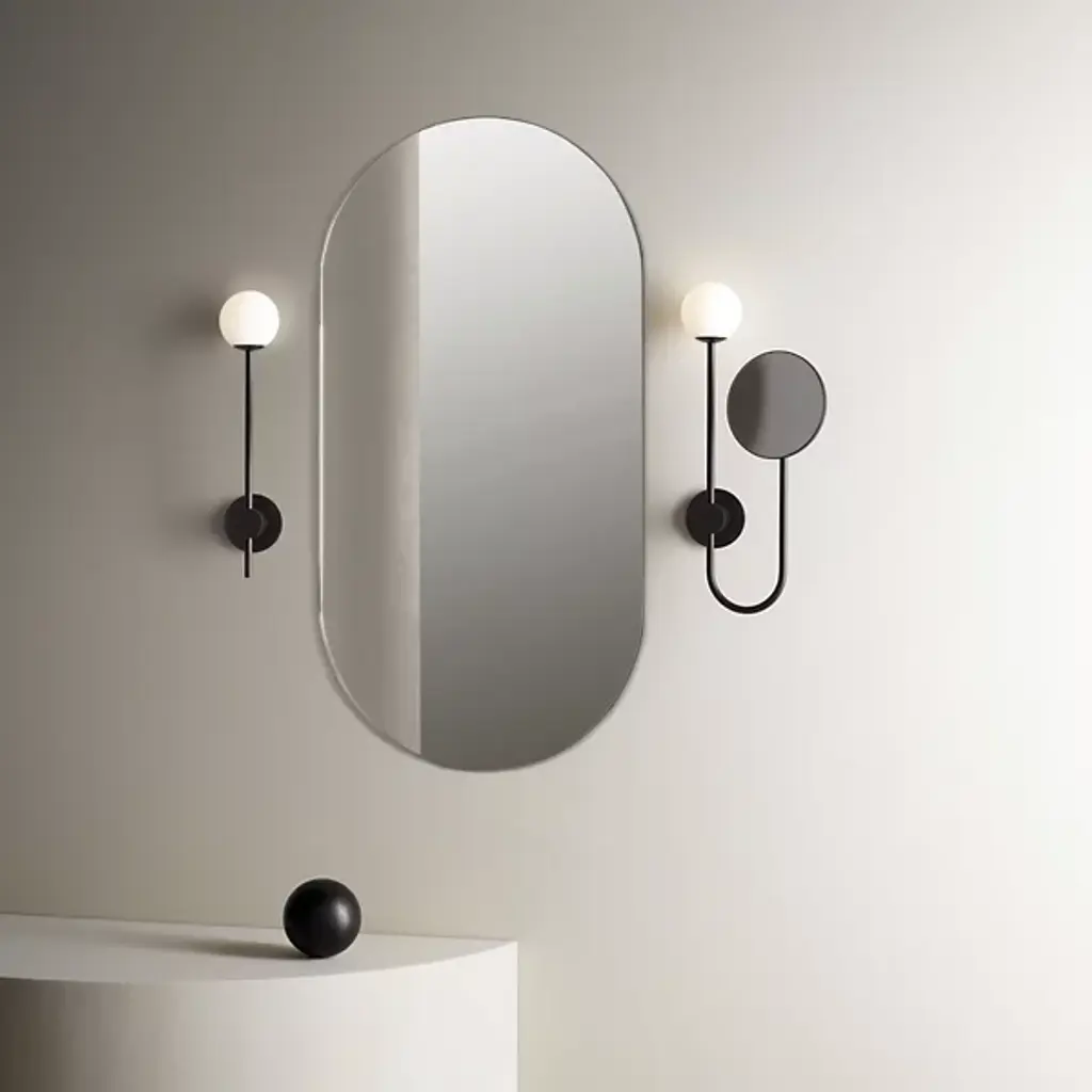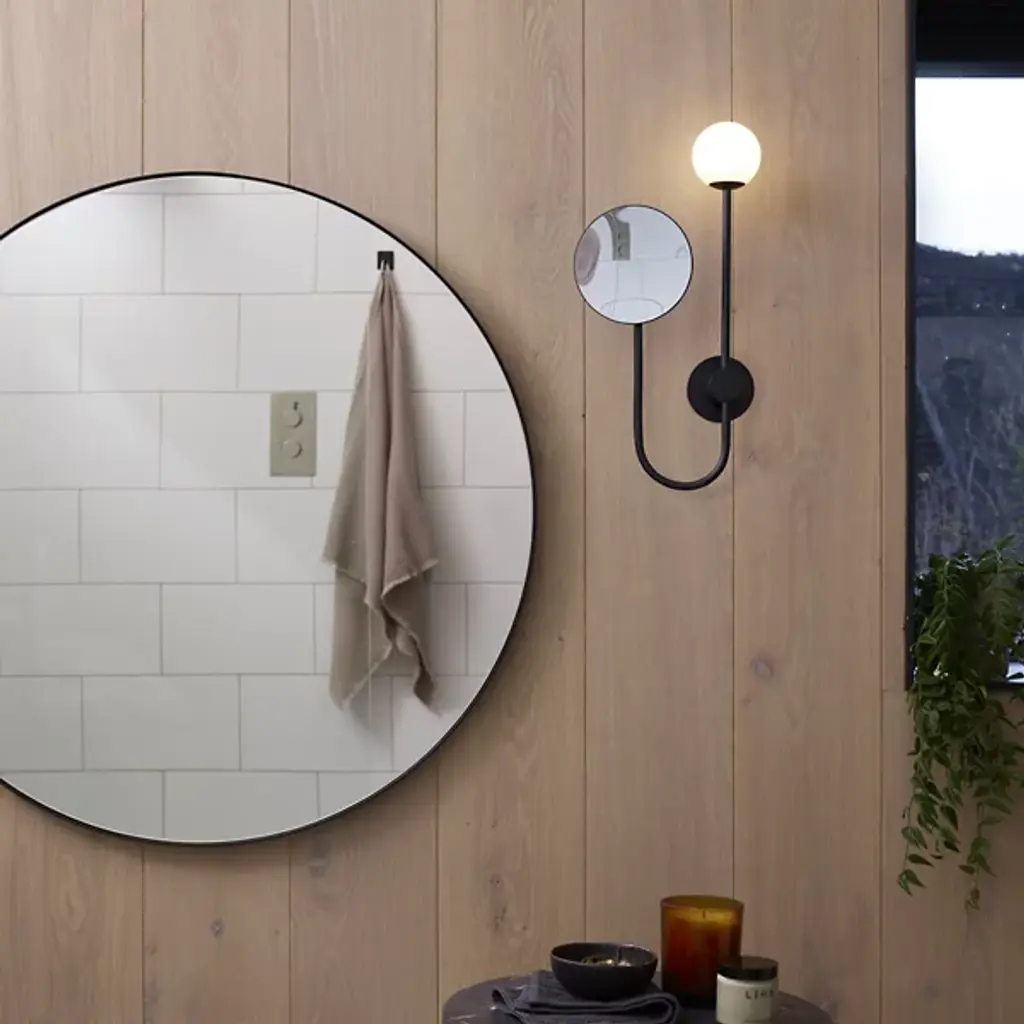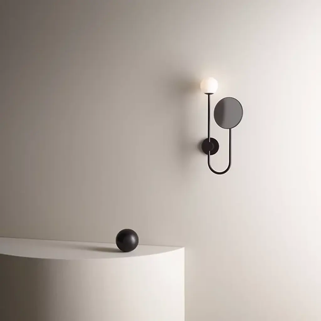 Add a unique, functional piece to the décor of your home with the Orb Wall Sconce with Mirror, one of the pieces of the Capsule Collection Volume 01 by Astro Lighting. This piece is made of smooth metal throughout and starts with a round base that connects directly to the wall. A long and slender arm gently curves into a U-shape, leading upward at both ends to an acid-etched glass orb and a crisp mirror. The LED within the orb provides a bright and even glow, while the fully adjustable mirror that 'orbits' around the lamp.