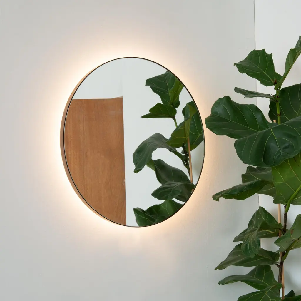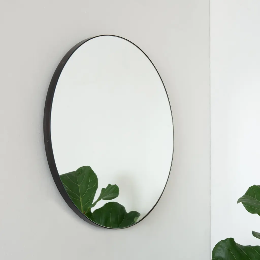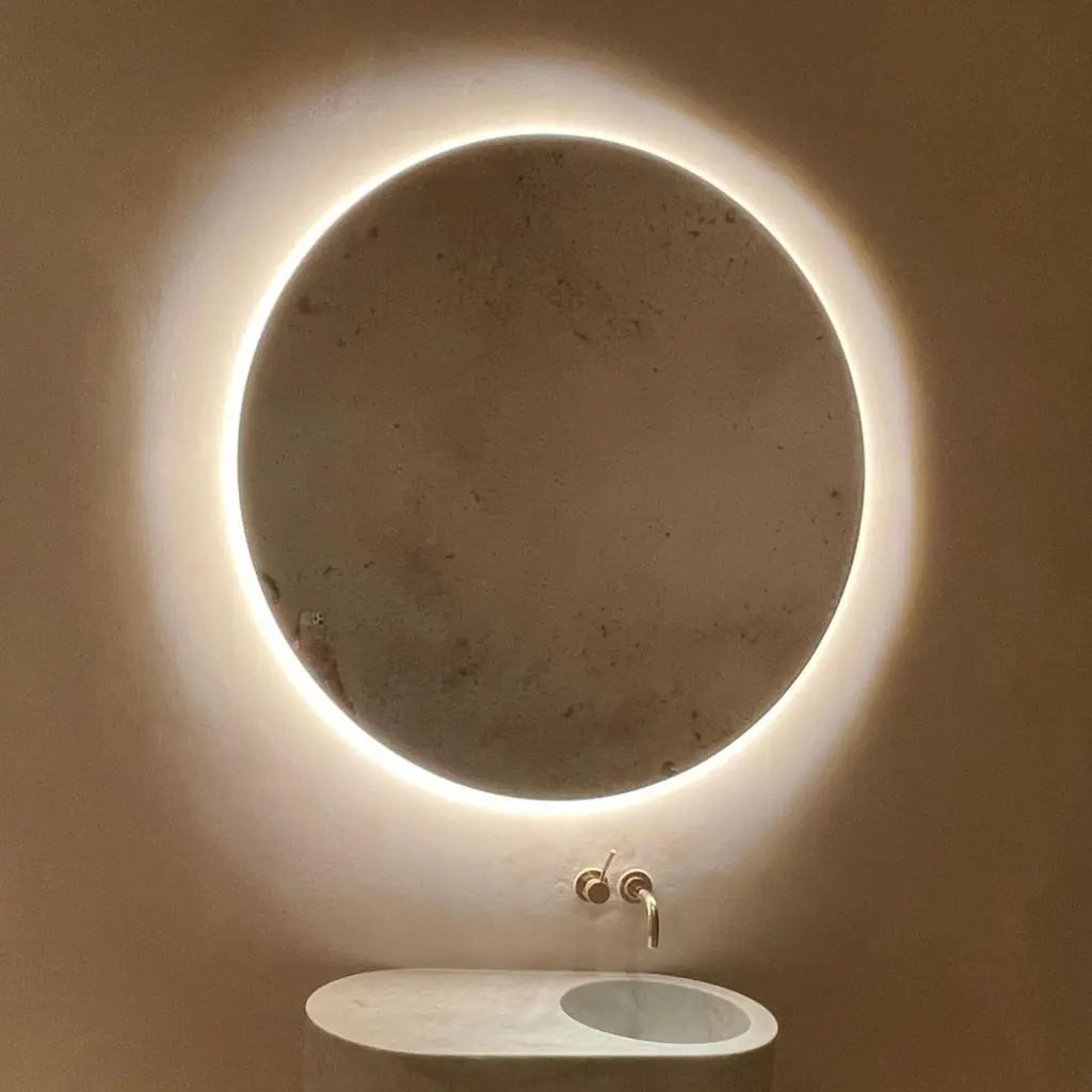 Stunning Orbis™ back Illuminated round mirror with an elegant bronze patina brass frame. Made in London, UK. This mirror is fully customisable to suit the specific requirements of each interior.The Neska™ signature bronze patina finish of our frames is a highly skilled and handcrafted process. Carried out by our talented craftsmen, this artistic finish is created from the base metal itself to achieve the natural look of aged brass. This makes the finish of each frame original and unique as no two frames can be identical. Any sample or images provided to obtain your approval on the desired finish or on our website or any other promotional material are therefore for guidance only.Standard Illumination. The mirror features warm white LED lighting with a colour temperature of 2800–3300K and a power consumption of 14.4W per meter. It has an IP67 rating.Driver. A non-dimmable driver compatible with local voltage is supplied as standard. Alternative drivers — including dimmable versions or different colour temperature options — are available upon request.Fitted with an integrated French cleat (split batten) system that ensures the mirror is securely mounted flush with the wall.Shipped safely and fully insured worldwide. All our mirrors are made on demand. Fabrication lead time for this particular mirror is approximately 4 to 5 weeks. Our mirrors are always shipped by courier express. Shipping via courier express typically requires 1 to 2 days to the UK, or 2 to 7 days outside the UK depending on the destination.Available in the following diameters and variations:Small: 40cm / 15.8"Regular: 50cm / 19.7"Medium: 60cm / 23.6"Large: 80cm / 31.5"Extra Large: 100cm / 39.4"Depth 2.4cm / 0.94" (customisable)Prices for 120cm / 47.2”, 150cm / 59”, or any bespoke diameter, are available on demand.Available options:- frame finishes: brass (brushed, polished or with a bronze patina), copper, stainless steel, blackened metal, powder coated aluminium in a range of standard or bespoke colours- full frame that extends to the front of the mirror- mirror tints: standard silver, black, bronze, blue, rose gold / peach- front-illumination- ON/OFF sensor switch- dimmable driver- demister pad- bevelPlease contact us for a quote or any bespoke specifications.Location pictures credit: Susanna Parry Michaelis Design @michaelisboyd @leafhouseadlestropORDERS OF MULTIPLE MIRRORS OF THE SAME TYPE: Please contact us to receive a Packing and Shipping quote when ordering multiple mirrors of the same type. An order for multiple mirrors of the same type may not be accepted without extra packing and shipping fees.