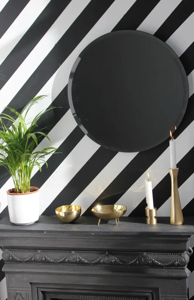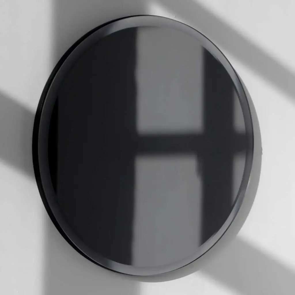 Charming black tinted frameless mirror with an elegant bevel and a black velvet backing. Designed and handcrafted in London, UK.Our mirrors are designed with an integrated French cleat (split batten) system that ensures the mirror is securely mounted flush with the wall. An alternative hanging hook or a Z-bar (depending on the size of the mirror) is available on demand for mirrors that need to be installed allowing some separation from the wall.Shipped safely and insured worldwide. All our mirrors are made on demand. Fabrication lead time for this particular mirror is approximately 4 to 5 weeks. Our mirrors are always shipped by courier express. Shipping via courier express typically requires 1 to 2 days to the UK, or 2 to 7 days outside the UK depending on the destination.Available in the following diameters:Small: 40cm / 15.8"Regular: 50cm / 19.7"Medium: 60cm / 23.6"Large: 80cm / 31.5"Extra Large: 100cm / 39.4"Depth 6mm / 0.24"Prices for 120cm / 47.2”, 150cm / 59”, or any bespoke diameter, are available on demand.Available options:- mirror tints: standard silver, black, bronze, blue, rose gold / peach- back-illumination creating a halo effect- front-illumination around the periphery of the mirror- demister padPlease contact us for a quote for any bespoke specification or added options.This mirror is fully customisable. Shipped safely and insured worldwide.ORDERS OF MULTIPLE MIRRORS OF THE SAME TYPE: Please contact us to receive a Packing and Shipping quote when ordering multiple mirrors of the same type. An order for multiple mirrors of the same type may not be accepted without extra packing and shipping fees. Thank you.