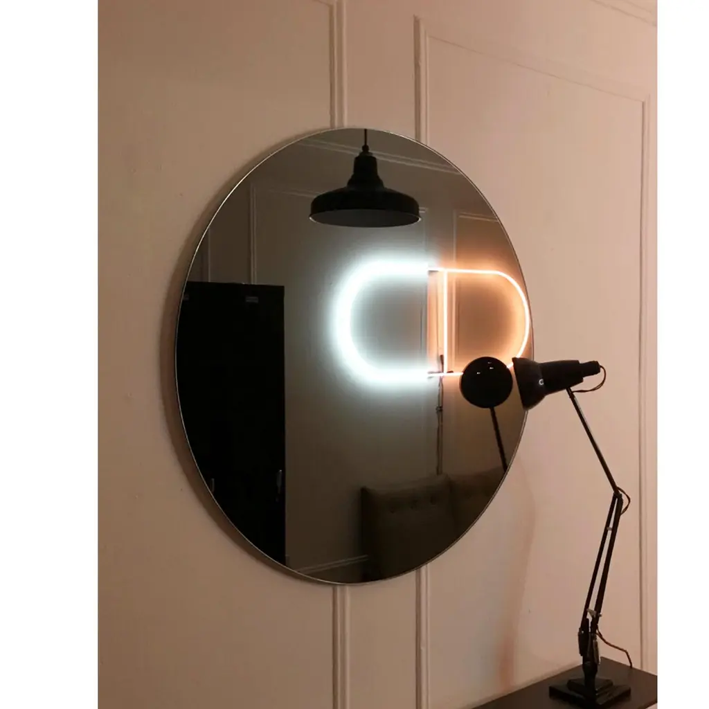 Orbis Black Tinted Round Frameless Contemporary Mirror, Floating Effect, Regular