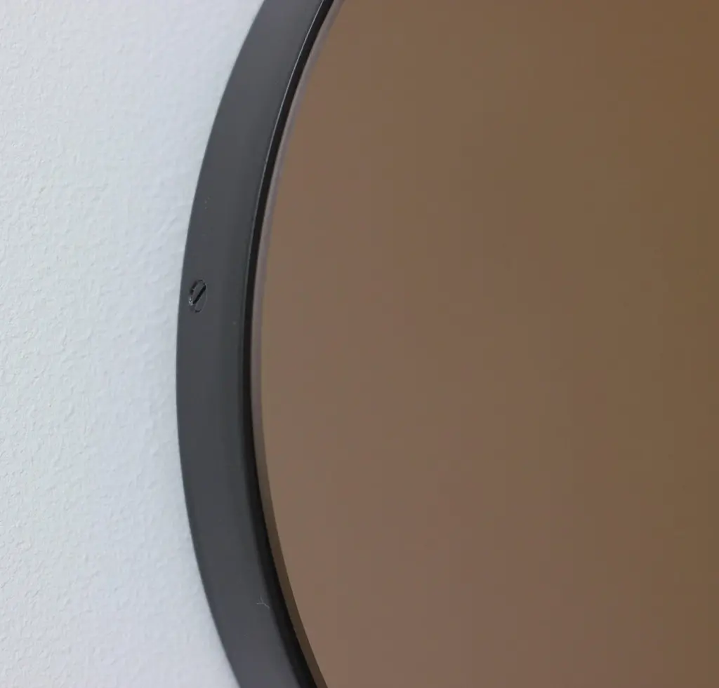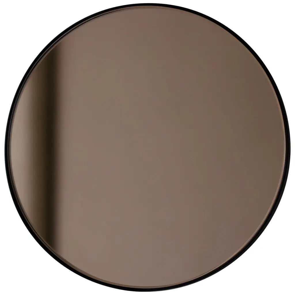 Contemporary Orbis™ round bronze tinted mirror with a minimalist aluminium powder coated black frame. Designed and handcrafted in London, UK.Our mirrors are designed with an integrated French cleat (split batten) system that ensures the mirror is securely mounted flush with the wall. An alternative hanging hook or a Z-bar (depending on the size of the mirror) is available on demand for mirrors that need to be installed allowing some separation from the wall.This mirror is fully customisable.Shipped safely and insured worldwide. All our mirrors are made on demand. Fabrication lead time for this particular mirror is approximately 4 to 5 weeks. Our mirrors are always shipped by courier express. Shipping via courier express typically requires 1 to 2 days to the UK, or 2 to 7 days outside the UK depending on the destination. Available in the following diameters and variations:Small: 40cm / 15.8"Regular: 50cm / 19.7"Medium: 60cm / 23.6"Large: 80cm / 31.5"Extra Large: 100cm / 39.4"Depth 1.8cm / 0.7" (customisable)Prices for 120cm / 47.2”, 150cm / 59”, or any bespoke diameter, are available on demand.Available options:- frame depth: 18mm / 0.71’’, 24mm / 0.94’’, and 30mm / 1.18’’- frame finish: brass (brushed, polished or with a bronze patina), copper, stainless steel, blackened metal, powder coated aluminium in a range of standard or bespoke colours- mirror tint: standard silver, black, bronze, blue, rose gold / peach- back-illumination creating a halo effect- front-illumination around the periphery of the mirror- demister pad- bevelPlease contact us for a quote for any bespoke specifications or added options.ORDERS OF MULTIPLE MIRRORS OF THE SAME TYPE: Please contact us to receive a Packing and Shipping quote when ordering multiple mirrors of the same type. An order for multiple mirrors of the same type may not be accepted without extra packing and shipping fees.