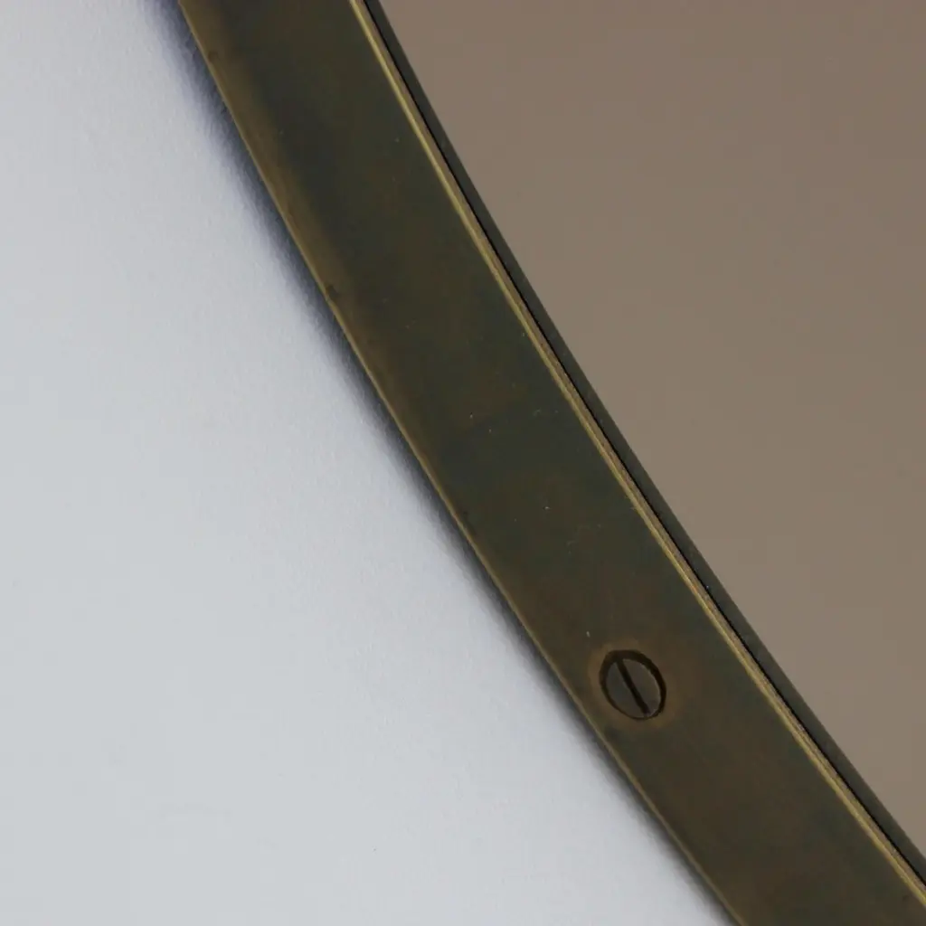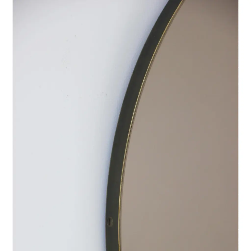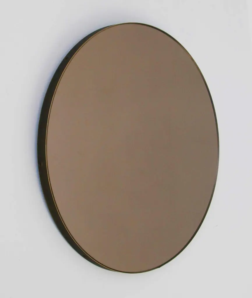 Contemporary bronze tinted Orbis™ round mirror with a solid brass frame with a bronze patina finish. Designed and handcrafted in London, UK.Our mirrors are designed with an integrated French cleat (split batten) system that ensures the mirror is securely mounted flush with the wall. An alternative hanging hook or a Z-bar (depending on the size of the mirror) is available on demand for mirrors that need to be installed allowing some separation from the wall.The Neska™ signature bronze patina finish of our frames is a highly skilled and handcrafted process. Carried out by our talented craftsmen, this artistic finish is created from the base metal itself to achieve the natural look of aged brass. This makes the finish of each frame original and unique as no two frames can be identical. Any sample or images provided to obtain your approval on the desired finish or on our website or any other promotional material are therefore for guidance only.This mirror is fully customisable.Shipped safely and insured worldwide. All our mirrors are made on demand. Fabrication lead time for this particular mirror is approximately 4 to 5 weeks. Our mirrors are always shipped by courier express. Shipping via courier express typically requires 1 to 2 days to the UK, or 2 to 7 days outside the UK depending on the destination.Available in the following diameters:Small: 40cm / 15.8"Regular: 50cm / 19.7"Medium: 60cm / 23.6"Large: 80cm / 31.5"Extra Large: 100cm / 39.4"Depth 1.8cm / 0.7"Prices for 120cm / 47.2”, 150cm / 59”, or any bespoke diameter, are available on demand.Available options:- frame finish: brass (brushed, polished or with a bronze patina), copper, stainless steel, blackened metal, powder coated aluminium in a range of standard or bespoke colours- mirror tints: standard silver, black, bronze, blue, rose gold / peach- back-illumination creating a halo effect- front-illumination around the periphery of the mirror- demister pad- bevelPlease contact us for a quote for any bespoke specification or added options.ORDERS OF MULTIPLE MIRRORS OF THE SAME TYPE: Please contact us to receive a Packing and Shipping quote when ordering multiple mirrors of the same type. An order for multiple mirrors of the same type may not be accepted without extra packing and shipping fees. Thank you.
