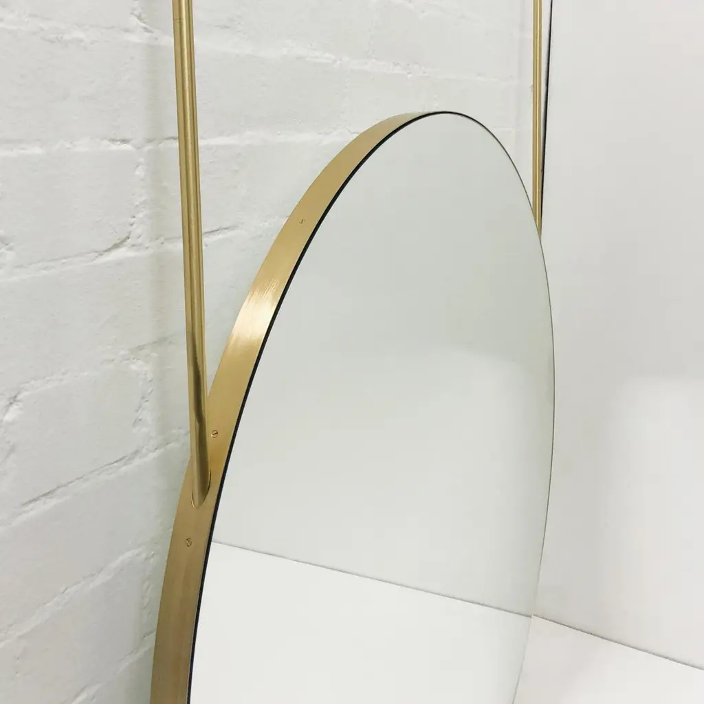 Orbis Ceiling Suspended Round Mirror With Brushed Brass Frame And Two Arms