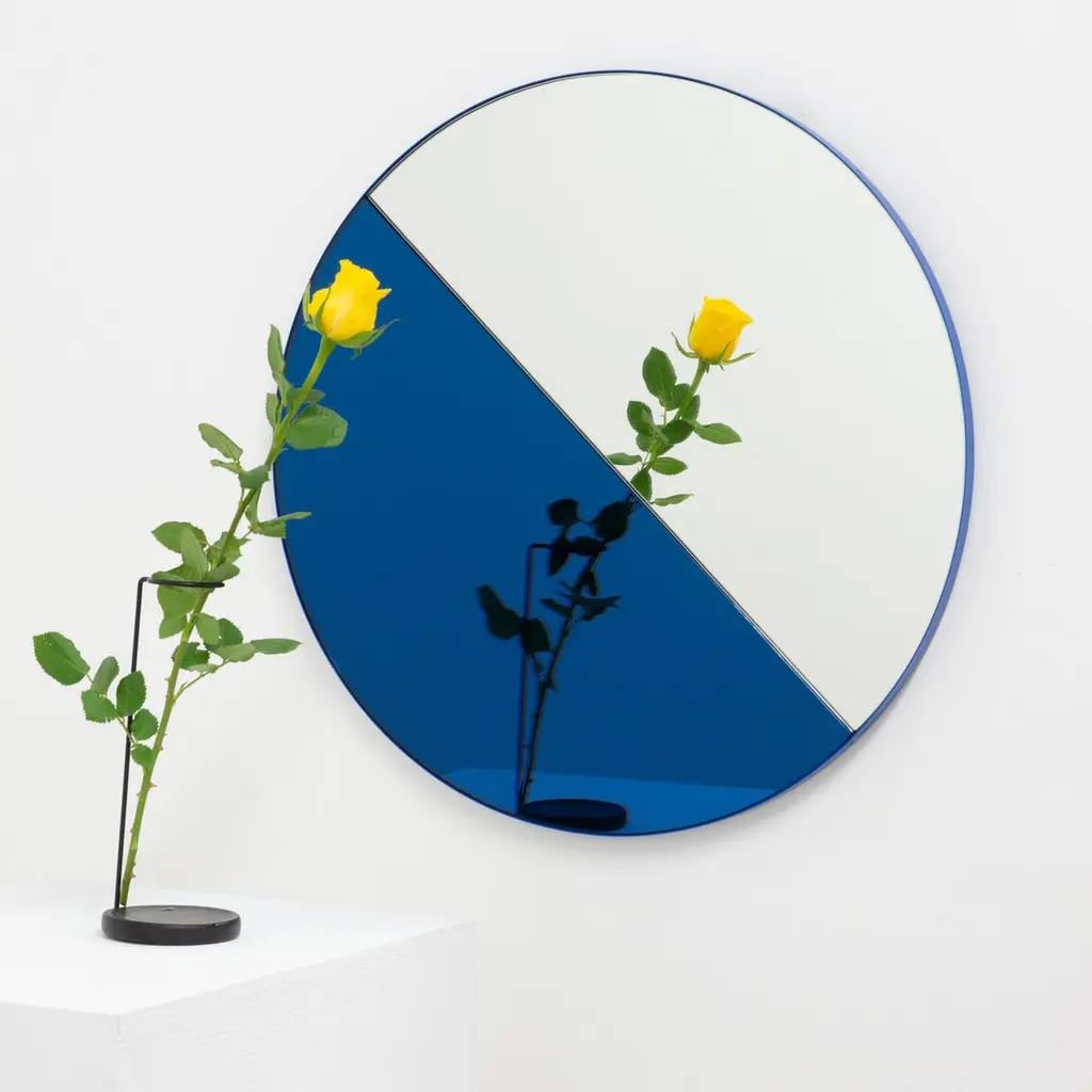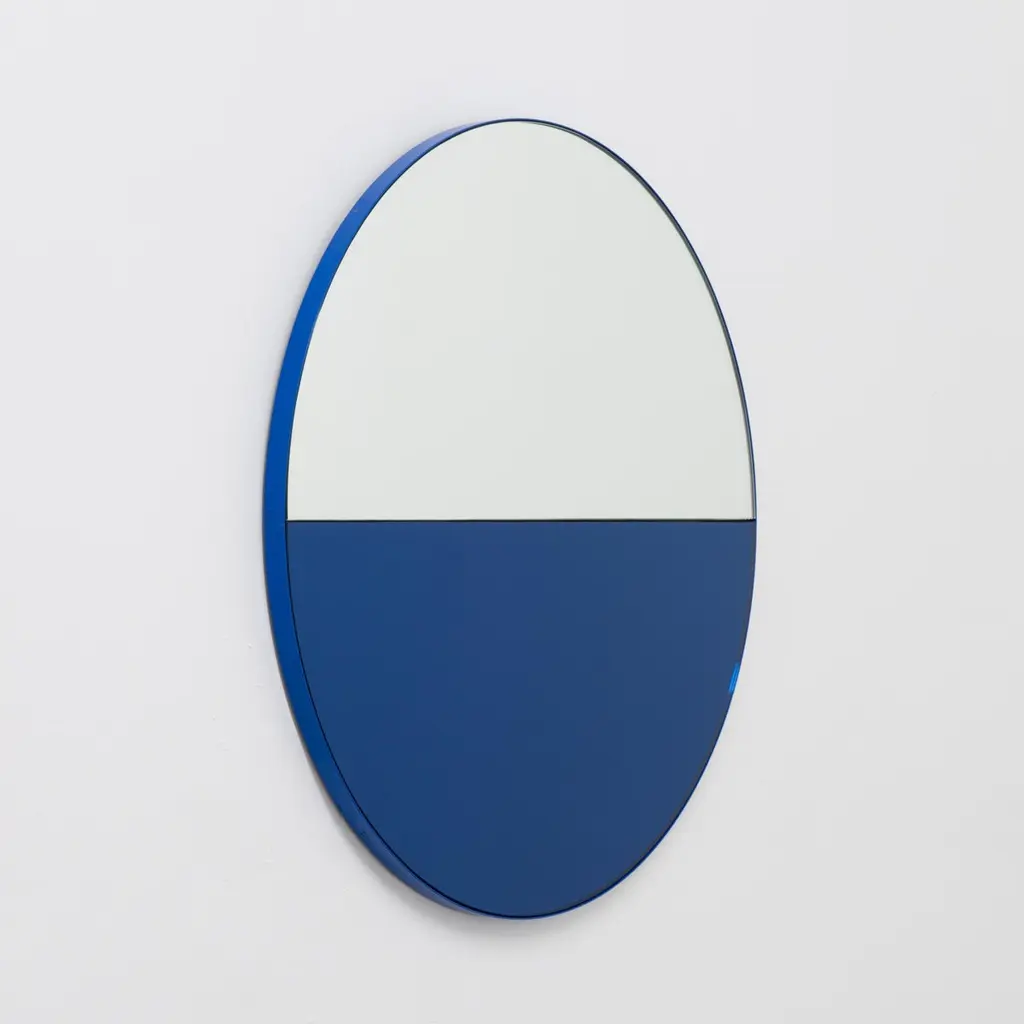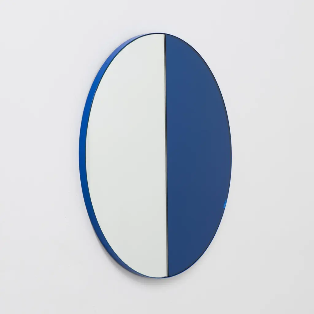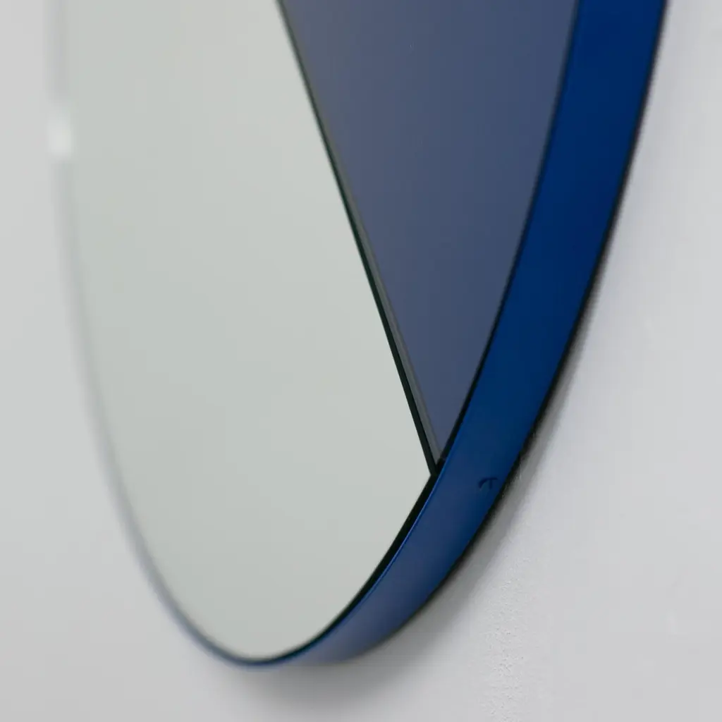 Orbis Dualis Mixed Tint Blue And Silver Round Mirror With Blue Frame, Regular