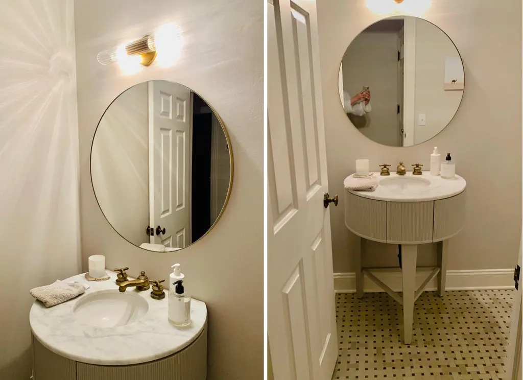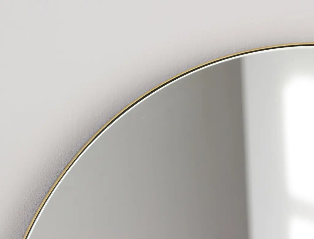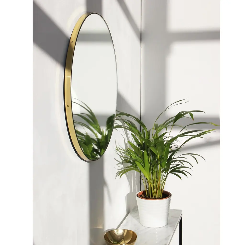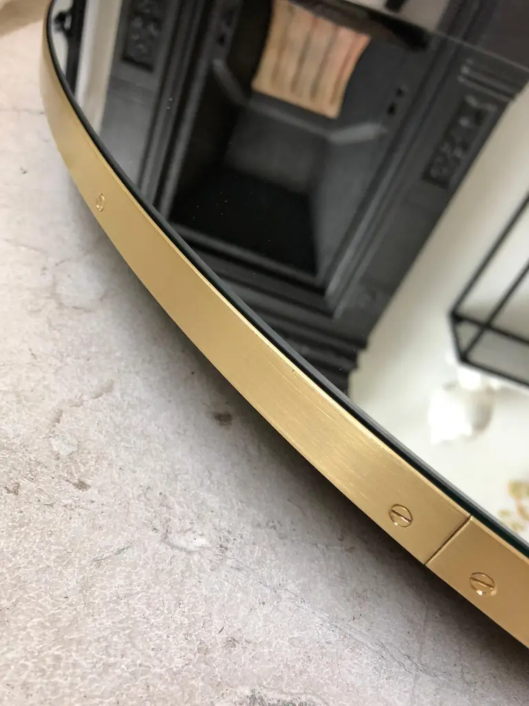 Art Deco style Orbis™ round mirror with a minimalist solid brushed brass frame. The detailing and finish, including visible brass screws, emphasise the crafty and quality feel of the mirror, a true signature of our brand. Designed and made in London, UK.Our mirrors are designed with an integrated French cleat (split batten) system that ensures the mirror is securely mounted flush with the wall. An alternative hanging hook or a Z-bar (depending on the size of the mirror) is available on demand for mirrors that need to be installed allowing some separation from the wall.This mirror is fully customisable.Shipped safely and insured worldwide. All our mirrors are made on demand. Fabrication lead time for this particular mirror is approximately 4 to 5 weeks. Our mirrors are always shipped by courier express. Shipping via courier express typically requires 1 to 2 days to the UK, or 2 to 7 days outside the UK depending on the destination.Available in the following diameters and variations:Small: 40cm / 15.8"Regular: 50cm / 19.7"Medium: 60cm / 23.6"Large: 80cm / 31.5"Extra Large: 100cm / 39.4"Depth 1.8cm / 0.7" (customisable)Prices for 120cm / 47.2”, 150cm / 59”, or any bespoke diameter, are available on demand.Available options:- frame depth: 18mm / 0.71’’, 24mm / 0.94’’ and 30mm / 1.18’’- frame finish: brass (brushed, polished or with a bronze patina), copper, stainless steel, blackened metal, powder coated aluminium in a range of standard or bespoke colours- mirror tints: standard silver, black, bronze, blue, rose gold / peach- back-illumination creating a halo effect- front-illumination around the periphery of the mirror- demister pad- bevelPlease contact us for a quote for any bespoke specifications or added options.ORDERS OF MULTIPLE MIRRORS OF THE SAME TYPE: Please contact us to receive a Packing and Shipping quote when ordering multiple mirrors of the same type. An order for multiple mirrors of the same type may not be accepted without extra packing and shipping fees. Thank you.