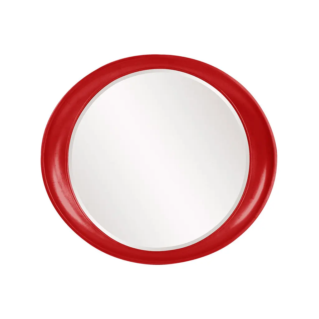 Orbis Round Contemporary Mirror With Red Frame, Regular
