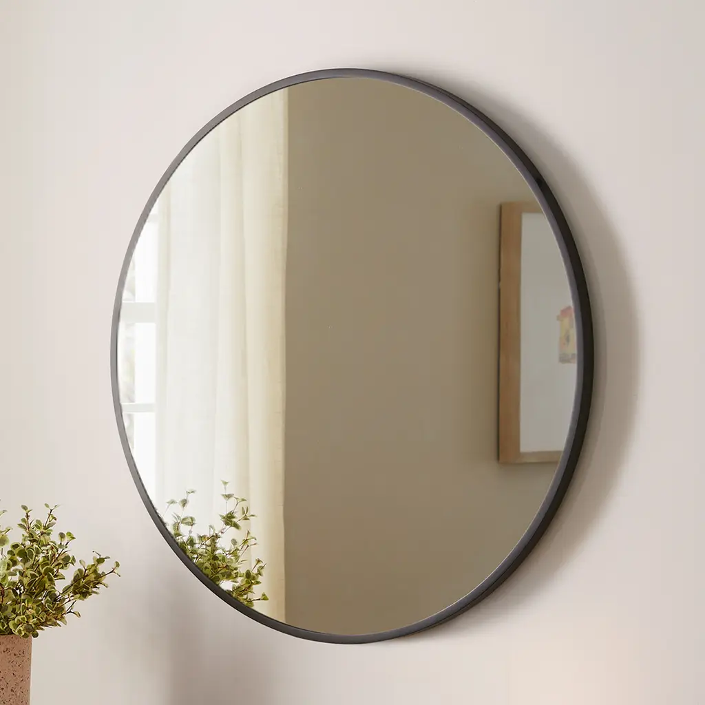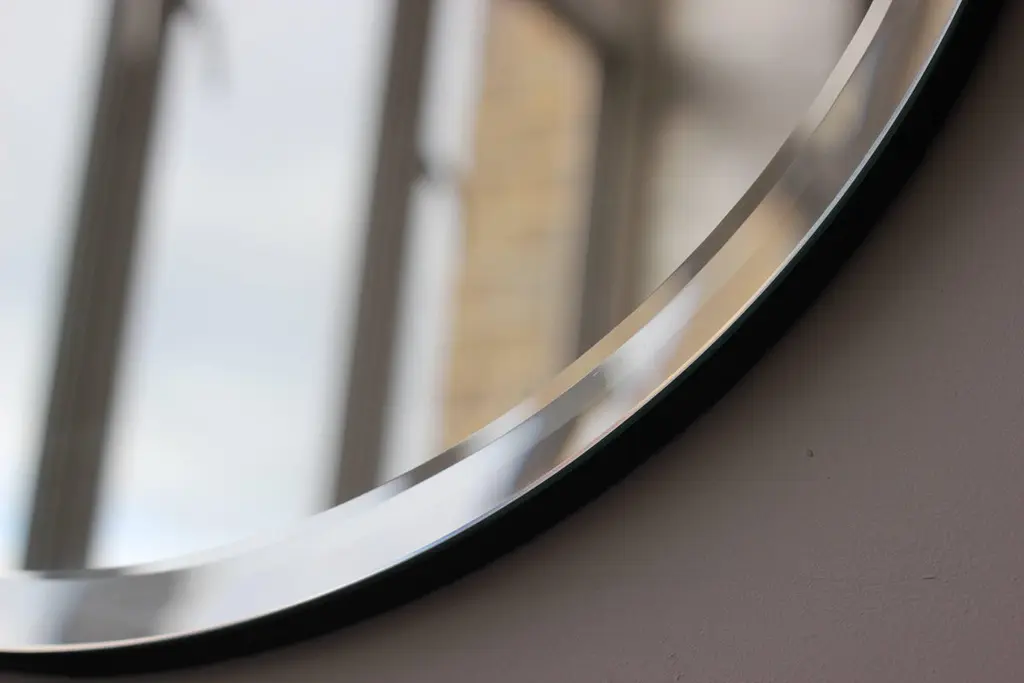 Delightful mirror frameless with an elegant bevel, velvet backing and optional brass clips. Designed and hand-crafted in London, UK.Our mirrors are designed with an integrated French cleat (split batten) system that ensures the mirror is securely mounted flush with the wall. An alternative hanging hook or a Z-bar (depending on the size of the mirror) is available on demand for mirrors that need to be installed allowing some separation from the wall.This mirror is fully customisable.Shipped safely and insured worldwide. All our mirrors are made on demand. Fabrication lead time for this particular mirror is approximately 4 to 5 weeks. Our mirrors are always shipped by courier express. Shipping via courier express typically requires 1 to 2 days to the UK, or 2 to 7 days outside the UK depending on the destination. Available in the following diameters:Small: 40cm / 15.8"Regular: 50cm / 19.7"Medium: 60cm / 23.6"Large: 80cm / 31.5"Extra Large: 100cm / 39.4"Depth 6mm / 0.24" Available options:- mirror tints: standard silver, black or bronze- back-illumination creating a halo effect- demister pad Please contact us for a quote for any bespoke specification or added options.ORDERS OF MULTIPLE MIRRORS OF THE SAME TYPE: Please contact us to receive a Packing and Shipping quote when ordering multiple mirrors of the same type. An order for multiple mirrors of the same type may not be accepted without extra packing and shipping fees. Thank you.