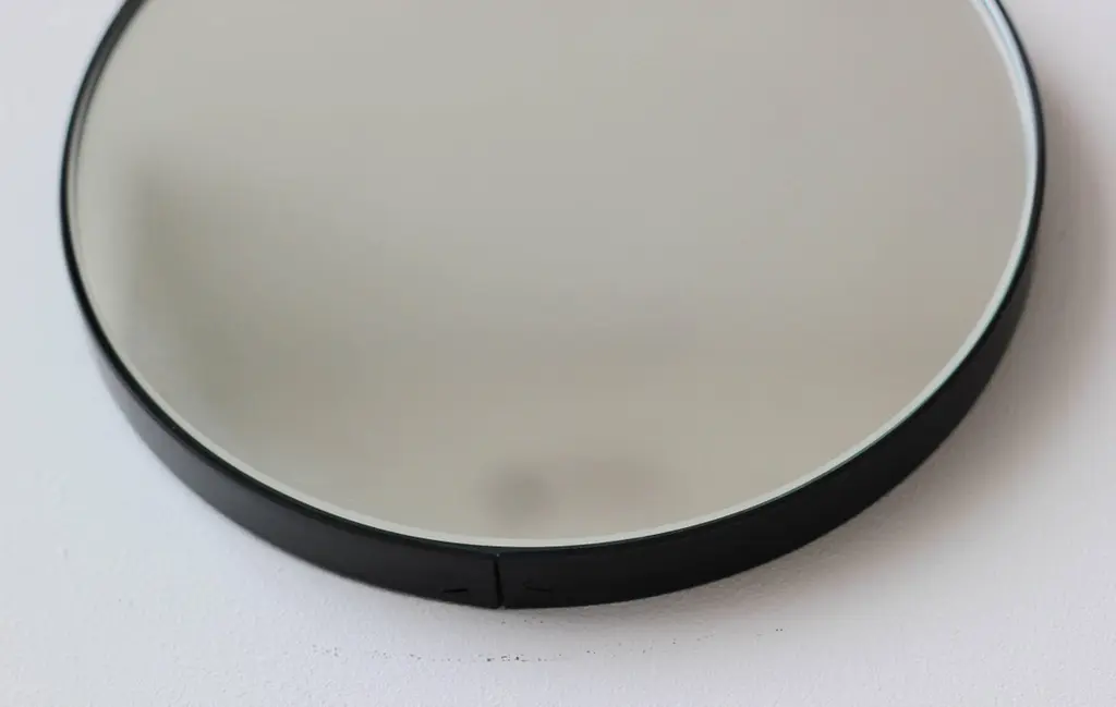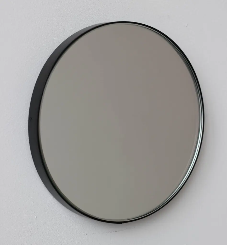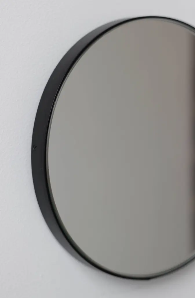 Minimalist Orbis™ round mirror with an elegant aluminium powder coated black frame. Designed and handcrafted in London, UK.Medium, large and extra-large mirrors (60, 80 and 100cm) are fitted with an ingenious French cleat (split batten) system so they may hang flush with the wall. Small and regular sizes (40 and 50cm) are fitted with a practical brass D ring hook. A Z bar system is available for all sizes on demand.This mirror is fully customisable.Shipped safely and insured worldwide. All our mirrors are made on demand. Fabrication lead time for this particular mirror is approximately 4 to 5 weeks. Our mirrors are always shipped by courier express. Shipping via courier express typically requires 1 to 2 days to the UK, or 2 to 7 days outside the UK depending on the destination. Available in the following diameters and variations:Small: 40cm / 15.8"Regular: 50cm / 19.7"Medium: 60cm / 23.6"Large: 80cm / 31.5"Extra Large: 100cm / 39.4"Depth 1.8cm / 0.7" (customisable)Prices for 120cm / 47.2”, 150cm / 59”, or any bespoke diameter, are available on demand.Available options:- frame depth: 18mm / 0.71’’, 24mm / 0.94’’, and 30mm / 1.18’’- frame finish: brass (brushed, polished or with a bronze patina), copper, stainless steel, blackened metal, powder coated aluminium in a range of standard or bespoke colours- mirror tint: standard silver, black, bronze, blue, rose gold / peach- back-illumination creating a halo effect- front-illumination around the periphery of the mirror- demister pad- bevelPlease contact us for a quote for any bespoke specifications or added options.ORDERS OF MULTIPLE MIRRORS OF THE SAME TYPE: Please contact us to receive a Packing and Shipping quote when ordering multiple mirrors of the same type. An order for multiple mirrors of the same type may not be accepted without extra packing and shipping fees.