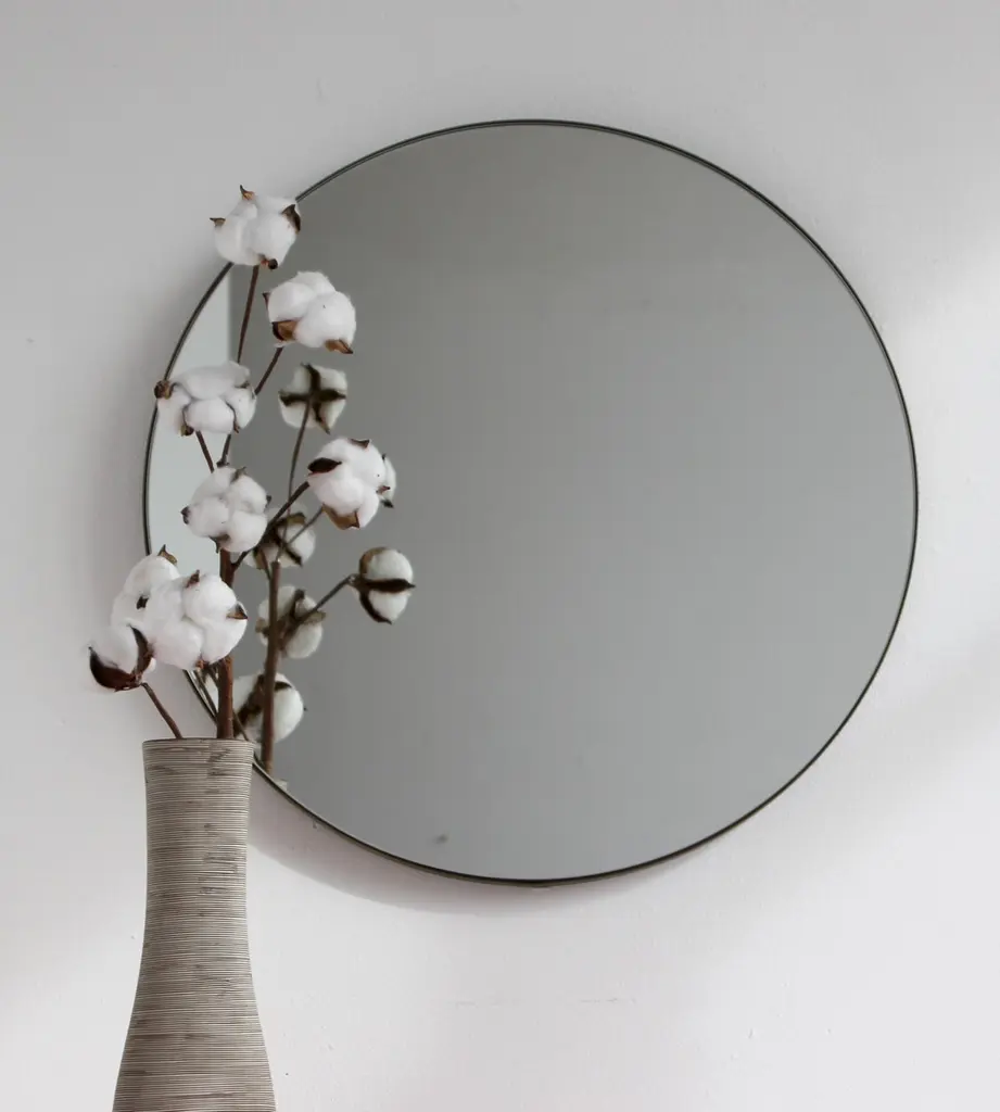 Minimalist Orbis™ round mirror with a solid brass frame with a bronze patina finish. Designed and handcrafted in London, UK.Our mirrors are designed with an integrated French cleat (split batten) system that ensures the mirror is securely mounted flush with the wall. An alternative hanging hook or a Z-bar (depending on the size of the mirror) is available on demand for mirrors that need to be installed allowing some separation from the wall.The Neska™ signature bronze patina finish of our frames is a highly skilled and handcrafted process. Carried out by our talented craftsmen, this artistic finish is created from the base metal itself to achieve the natural look of aged brass. This makes the finish of each frame original and unique as no two frames can be identical. Any sample or images provided to obtain your approval on the desired finish or on our website or any other promotional material are therefore for guidance only.This mirror is fully customisable.Shipped safely and insured worldwide. All our mirrors are made on demand. Fabrication lead time for this particular mirror is approximately 4 to 5 weeks. Our mirrors are always shipped by courier express. Shipping via courier express typically requires 1 to 2 days to the UK, or 2 to 7 days outside the UK depending on the destination.Prices on the website do not include local taxes and/or applicable import duties for deliveries outside of the United Kingdom.Available in the following diameters and variations:Small: 40cm / 15.8"Regular: 50cm / 19.7"Medium: 60cm / 23.6"Large: 80cm / 31.5"Extra Large: 100cm / 39.4"Depth 1.8cm / 0.7" (customisable)Prices for 120cm / 47.2”, 150cm / 59”, or any bespoke diameter, are available on demand.Available options:- frame depth: 18mm / 0.71’’, 24mm / 0.94’’, and 30mm / 1.18’’- frame finish: brass (brushed, polished or with a bronze patina), copper, stainless steel, blackened metal, powder coated aluminium in a range of standard or bespoke colours- mirror tint: standard silver, black, bronze, blue, rose gold / peach- back-illumination creating a halo effect- front-illumination around the periphery of the mirror- demister pad- bevelPlease contact us for a quote for any bespoke specifications or added options.ORDERS OF MULTIPLE MIRRORS OF THE SAME TYPE: Please contact us to receive a Packing and Shipping quote when ordering multiple mirrors of the same type. An order for multiple mirrors of the same type may not be accepted without extra packing and shipping fees. Thank you.