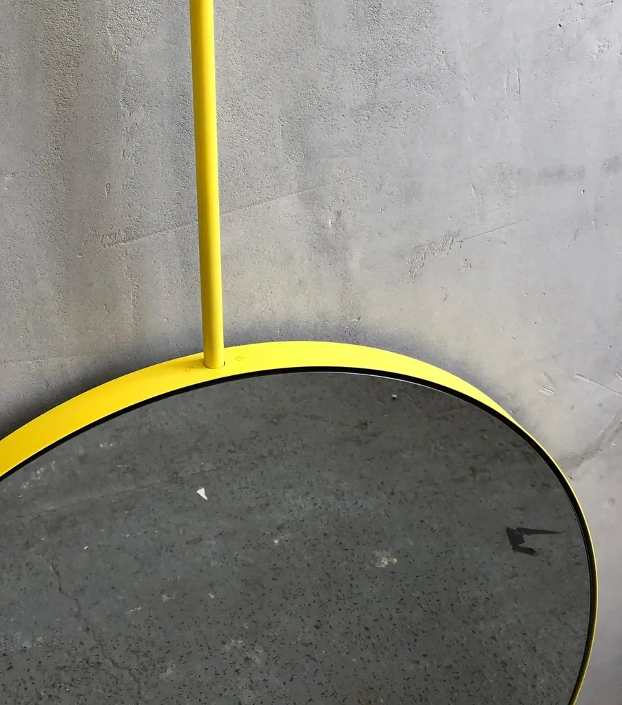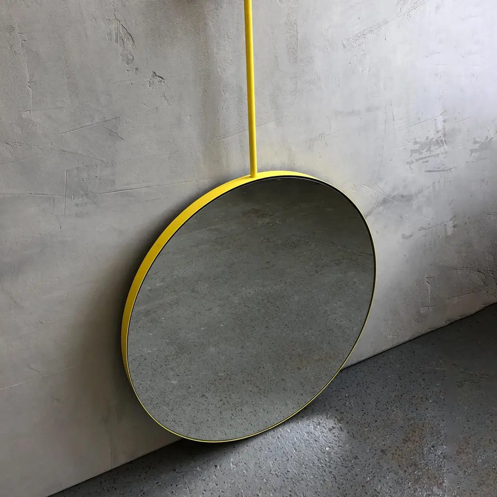Orbis Suspended Round Mirror With A Modern Yellow Frame