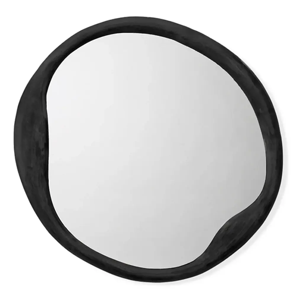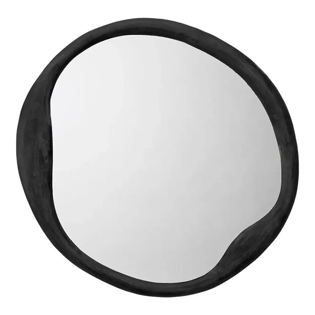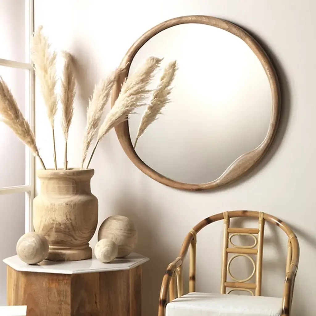 Beautiful imperfections highlight the natural construction of the Organic Round Mirror from Jamie Young Co. The piece resonates through its unexpected elements. Crafted in wood, it rests on the wall with a round frame evocative of a traditional emblem. Smooth curves flow gesturally around, creating a natural source of attraction. The warm natural tones and grain marks of the wood make it a one-of-one. A crisp embedded mirror adds a pristine reflection.