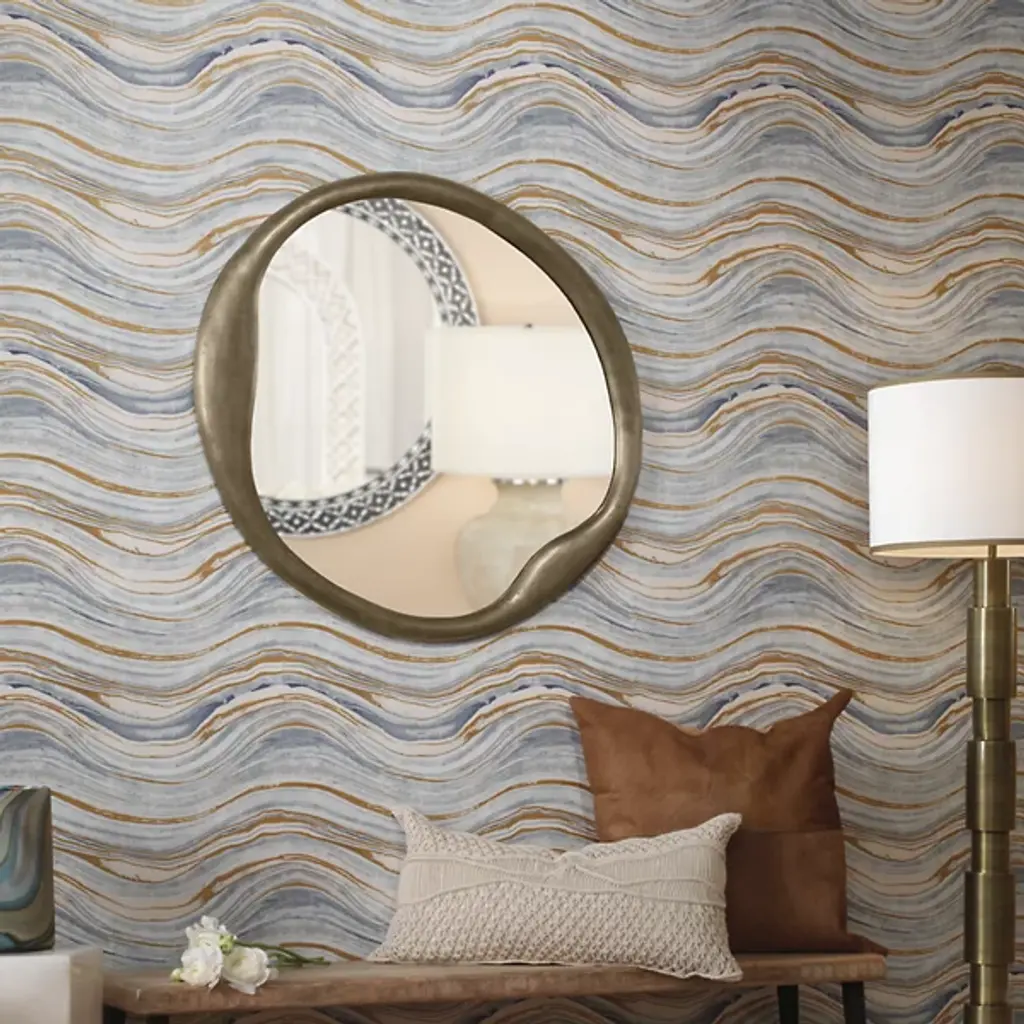 Beautiful imperfections highlight the natural construction of the Organic Round Mirror from Jamie Young Co. The piece resonates through its unexpected elements. Crafted in wood, it rests on the wall with a round frame evocative of a traditional emblem. Smooth curves flow gesturally around, creating a natural source of attraction. The warm natural tones and grain marks of the wood make it a one-of-one. A crisp embedded mirror adds a pristine reflection.