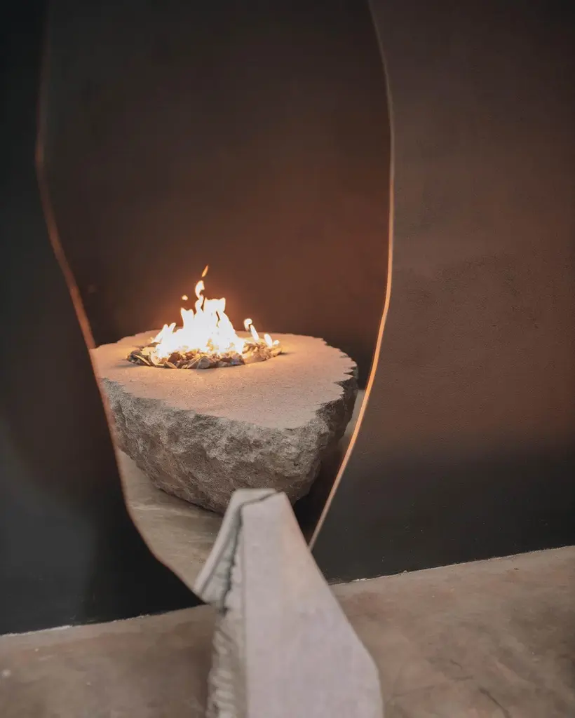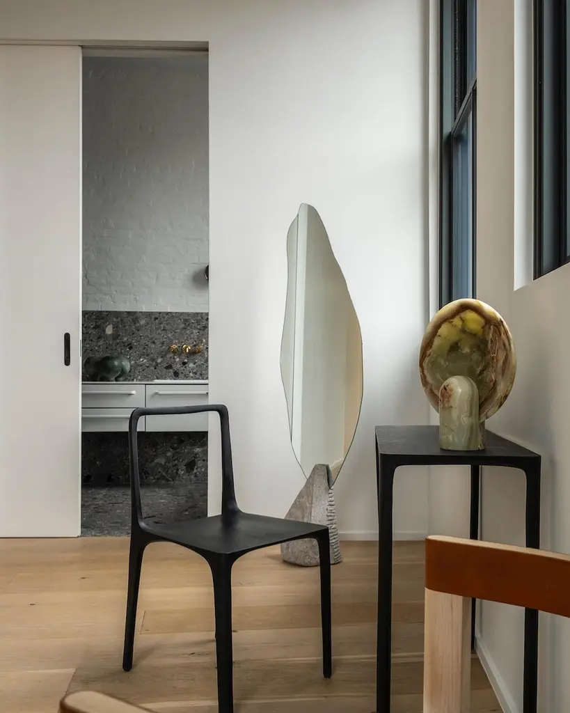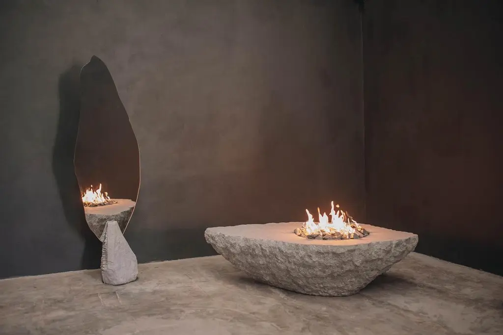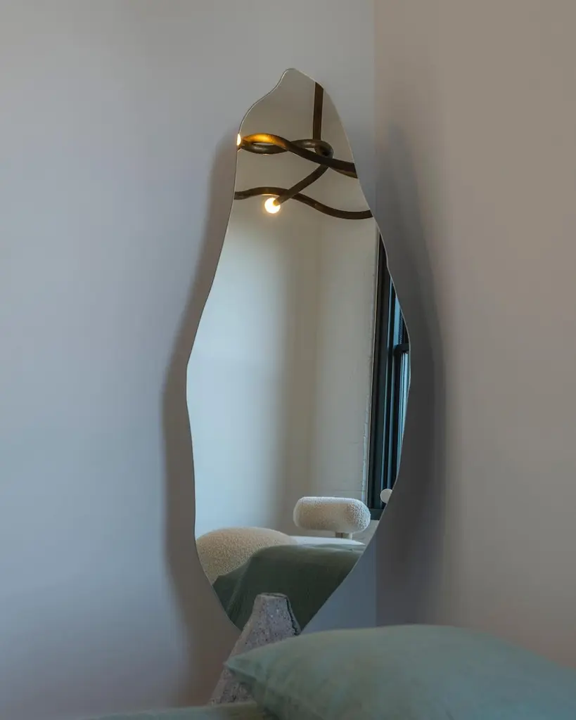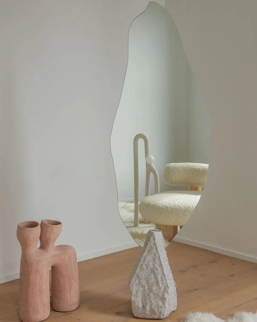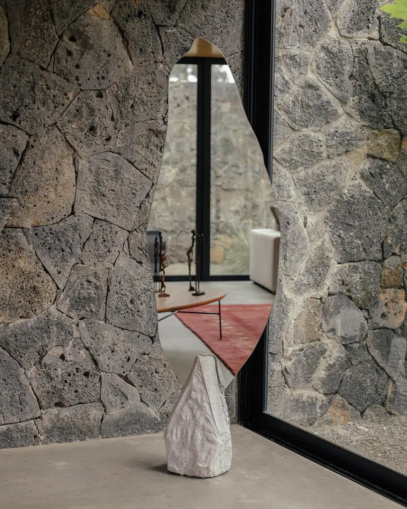 Organic Shape Mirror With Grey Stone Base In Center By Andres Monnier