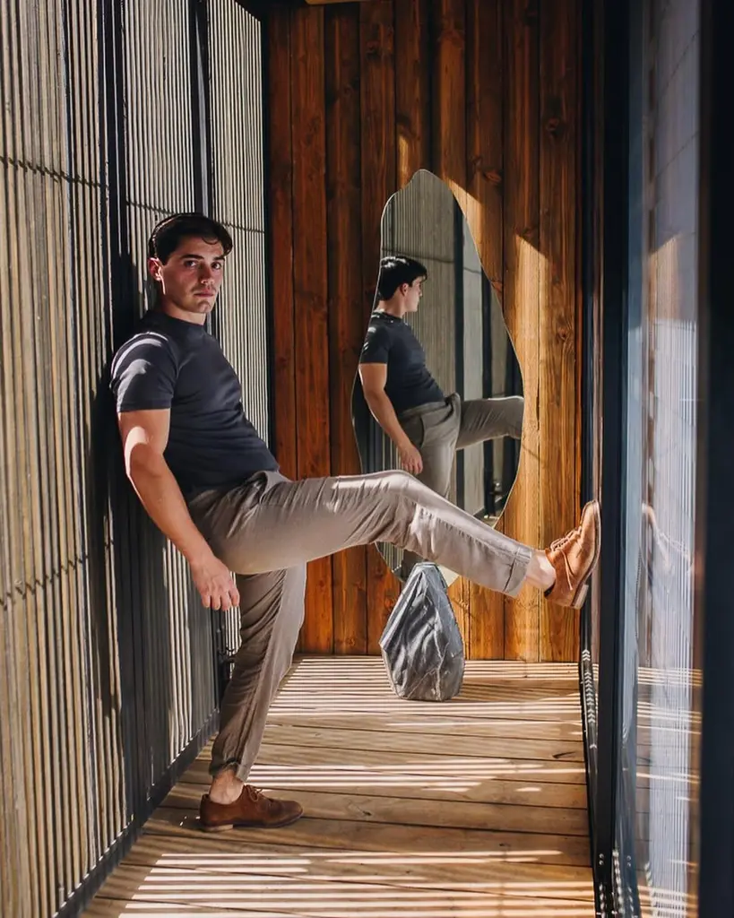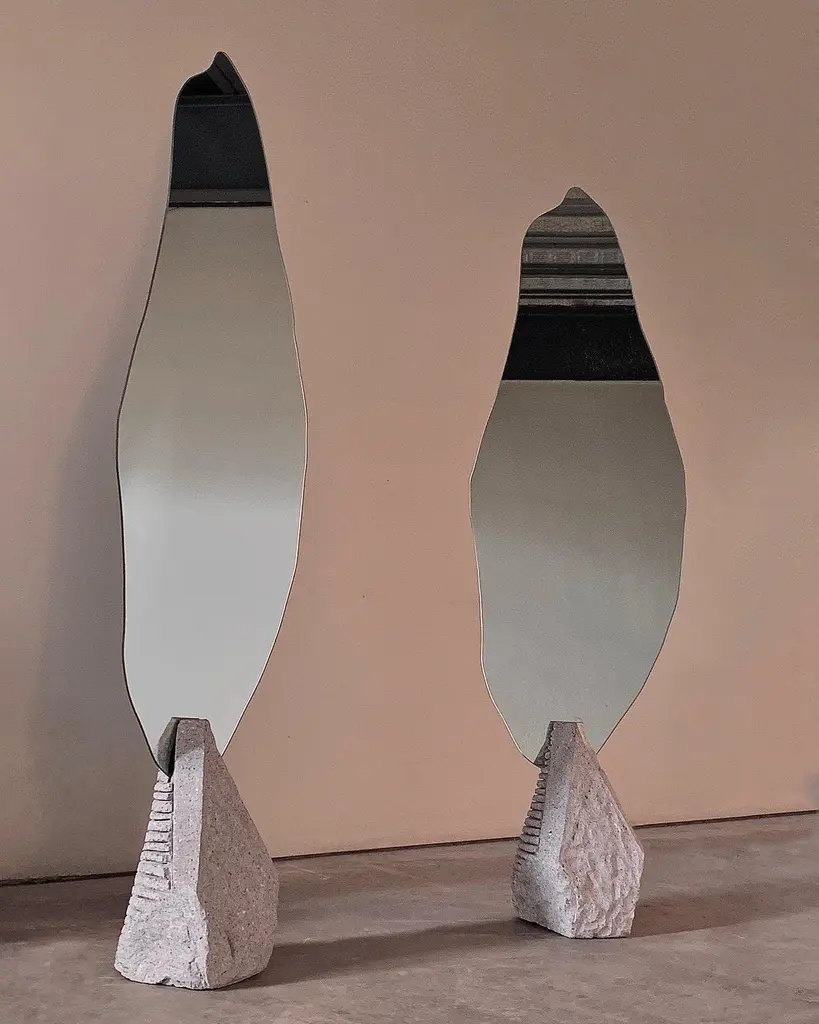 Narciso Uno Mirror by Andres MonnierDimensions: W 35 x D 60 x H 180 cmMaterials: Eran grey mirror- glass, black marblePiece inspired by the myth of Narciso, of Greek mythology. The shape of the mirror represents the body of water where Narciso sees his reflection. The base of the original design is built with quarry stone from San Luis Potosí Mexico. The shape is handcrafted with 8 different techniques. The base has different finishes to give tribute to age and time.Olympo Collection is inspired by the stories of Greek Mithology. Every detail has a purpose and each design borns by the conception of understanding the symbols and representation of each character in every myth.Every piece is a tribute to the essence of the myth. From the selection of materials, textures, design, to the handcraft of each sculpture.Designer's BiographyTreko Concrete is a Mexican studio based in Ensenada, that has as a purpose to create functional handcrafted furniture and sculptural pieces to tell stories with art and design. With the direction of AndresMonnier, Treko Concrete now creates handmade fire pits, art objects, and functional furniture with natural stone, mirror, concrete, wood, and metal. Treko works with different techniques and languages ofcreation to innovate new purposes in conventional furniture.