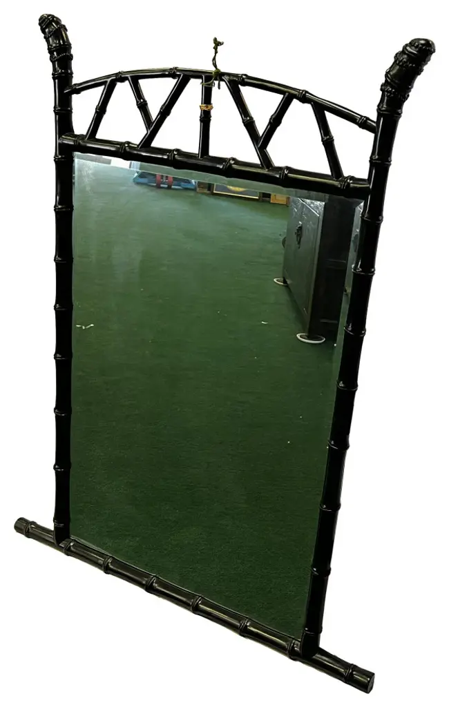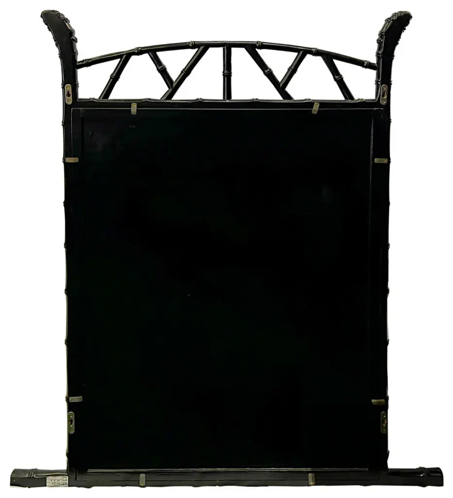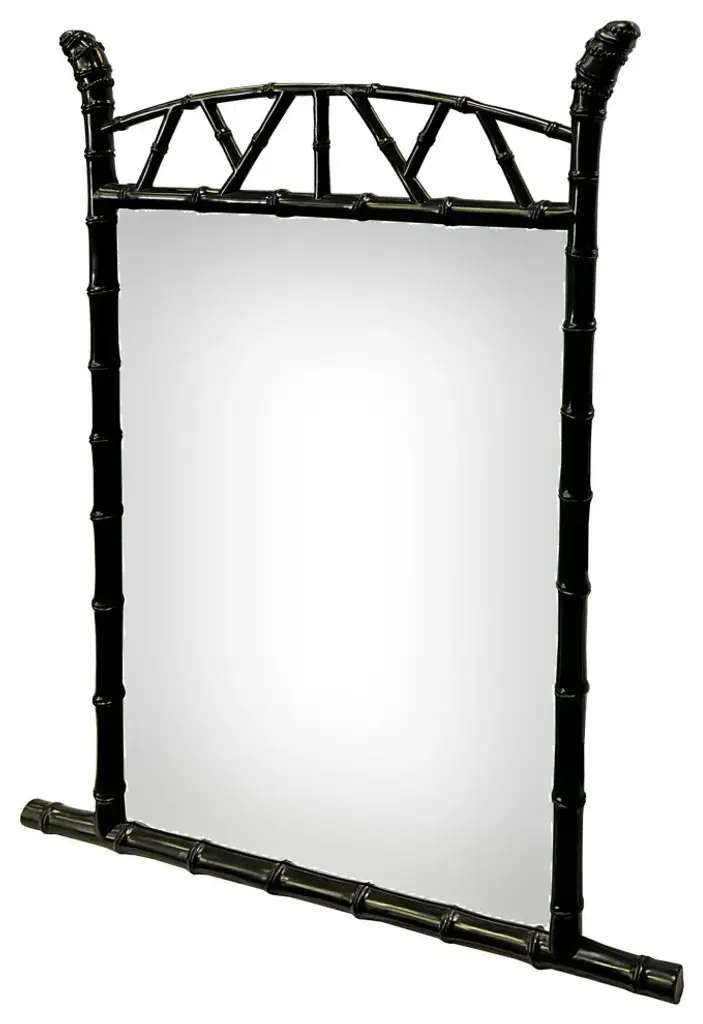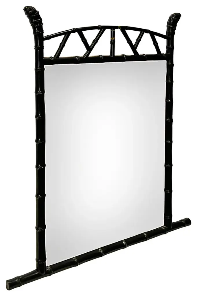 This is a traditional Asian display mirror with black lacquer wood frame carved into bamboo look. It is for wall hanging. Dimensions: w32.5"x d1.5"X h41.5"Origin: ChinaMaterial: WoodCondition: Handmade, Vintage style finish, wear-out marksWork: Ship in one pieceUSA domestic continental buyers of 48 states pay $165 shipping (buyers of Hawaii, Alaska, US Islands, Florida Keywest, and Canada pays the extra shipping cost). Insurance and handling charges are already included in the shipping cost.