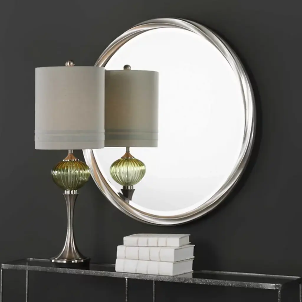 The Orion Mirror from Uttermost takes traditional craftsmanship in unexpected directions with its twisted motif frame. The handcrafted details channel energy through dynamic curves that draw the eye inward. Each curve represents hours of skilled artistry, resulting in a mirror that adds movement and character to any wall. The metallic finish application enhances the frame's natural undulations, while the beveled edge provides additional dimensionality. This distinctive piece brings artisanal quality into modern spaces, making it an intriguing addition to entryways, living rooms, or dining areas.